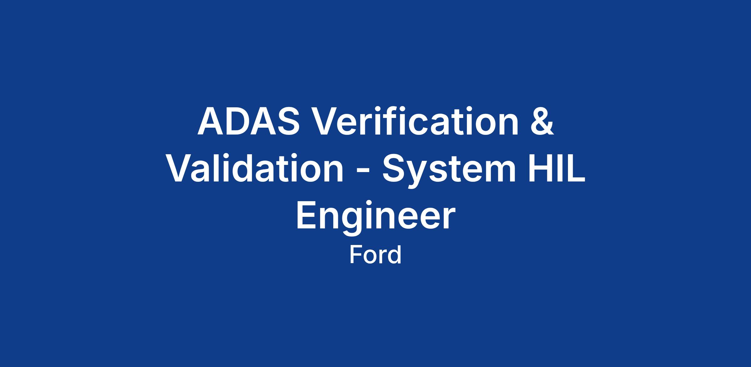 ADAS Verification & Validation - System HIL Engineer