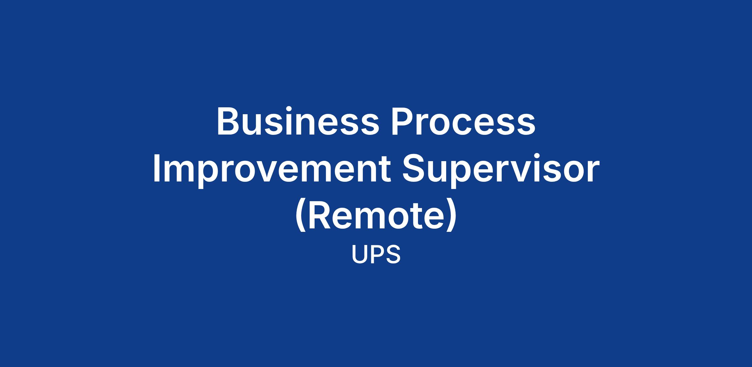 Business Process Improvement Supervisor (Remote)