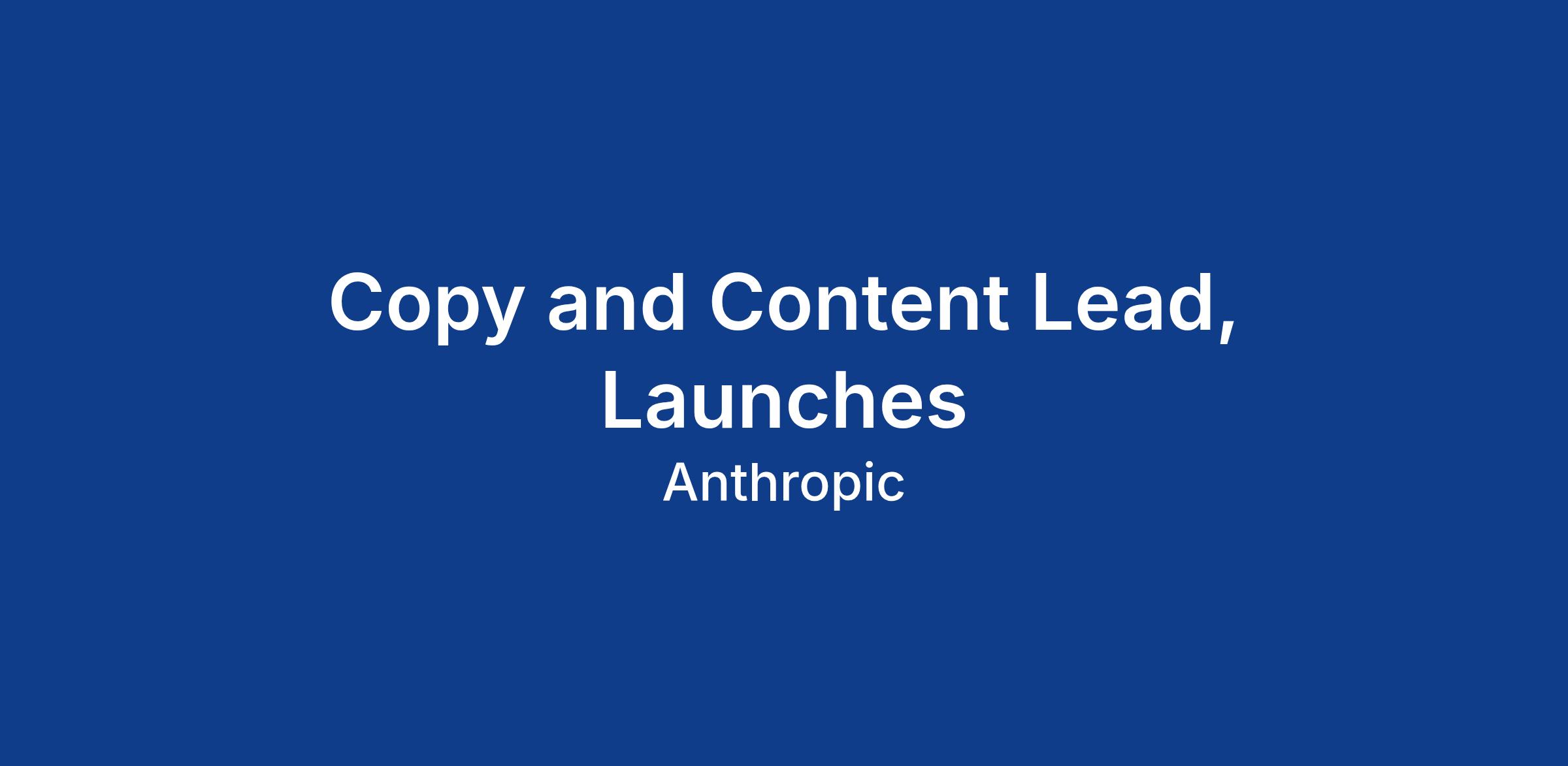 We're looking for a Copy and Content Lead to own the creative narrative for Claude product launches. You'll shape narratives that connect brand storytelling with product capabilities and differentiation, partnering closely with product and brand marketing teams.