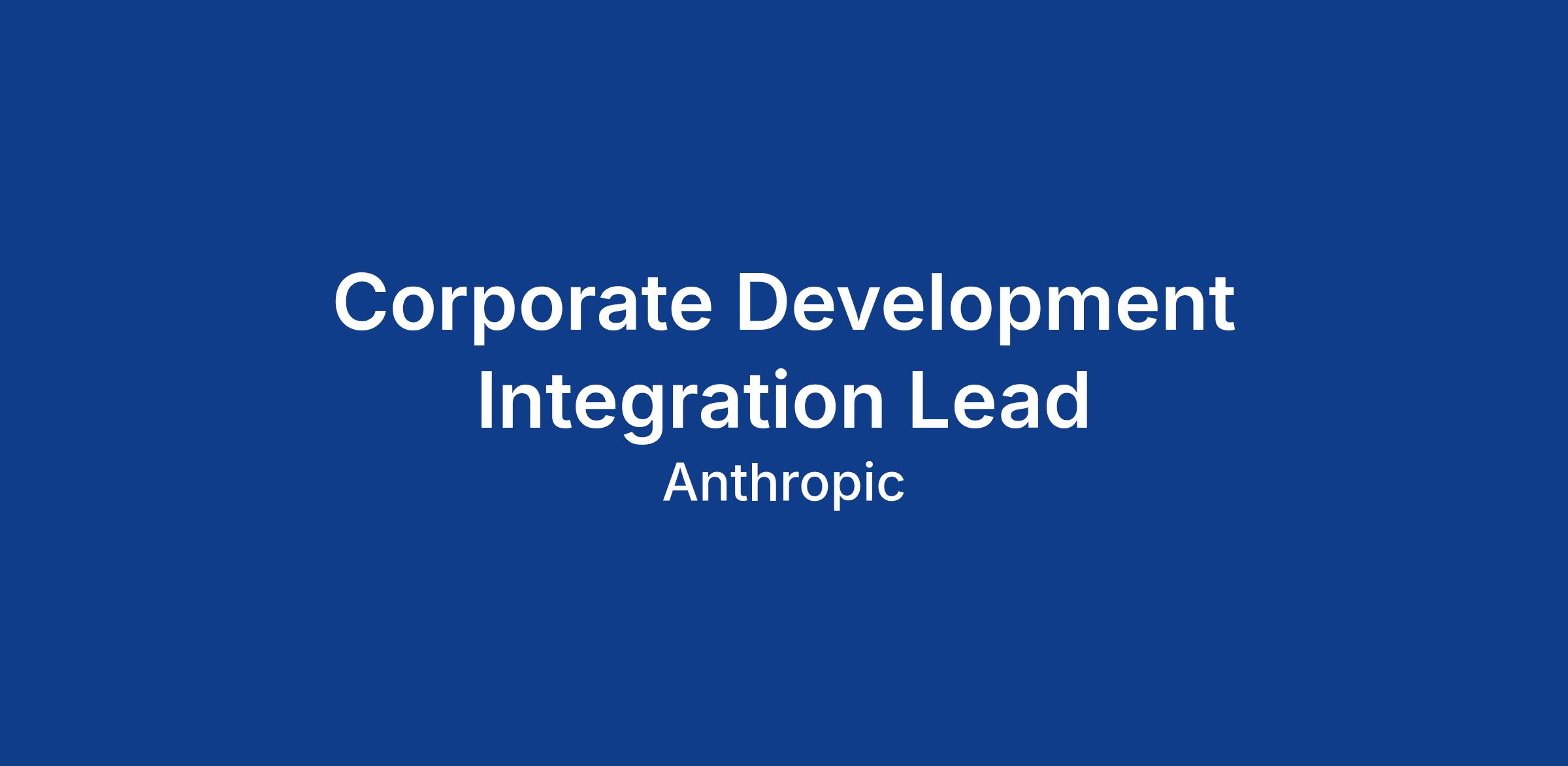 Anthropic is seeking a Corporate Development Integration Lead to own the critical post-signing phase of our M&A activity — from confirmatory diligence through integration planning to full operational follow-through. As Anthropic's corporate development function matures and transaction volume increases, this role will serve as the connective tissue between deal teams, product and engineering organizations, and the acquired teams themselves, ensuring that acquisitions deliver on their strategic thesis.