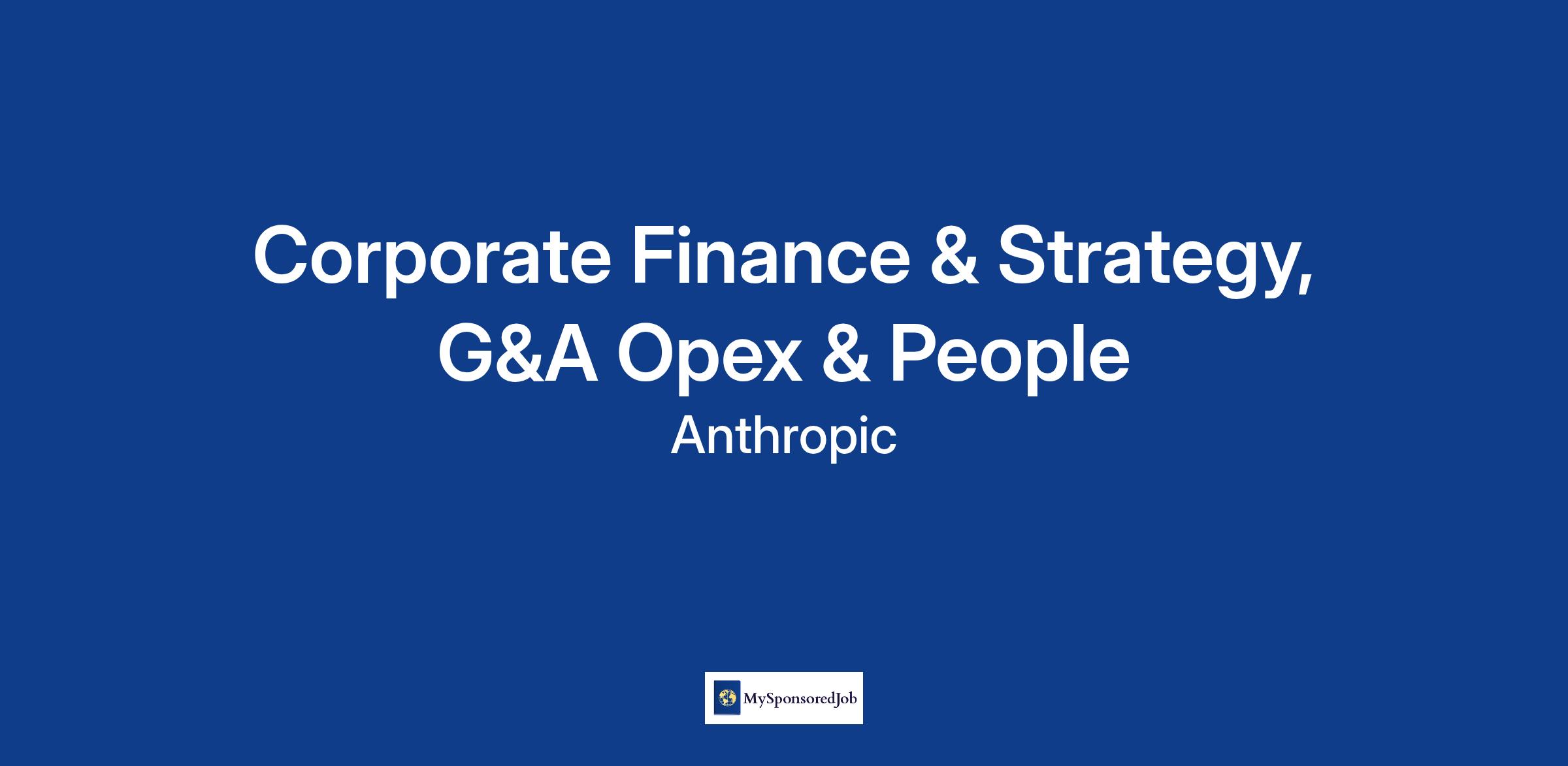 Our Corporate Finance & Strategy team serves as a strategic partner to Anthropic’s leadership, driving data-informed decisions that shape our company’s future. We are seeking a Finance & Strategy - G&A Opex Finance Business Partner to be a strategic advisor and analytical leader for our Finance, People, Legal, Policy, and Workplace functions. You will partner closely with leadership across these organizations to drive financial planning, provide data-driven insights, and support strategic decision-making as we scale our operations.