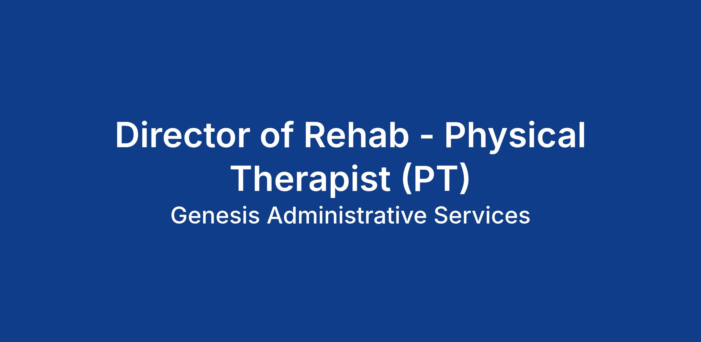 The Director of Rehab PT is responsible for the efficient management of rehabilitation services in their assigned account(s). This position also assists in integration of rehabilitation services in all settings. The Director of Rehab PT ensures that the highest standard of rehabilitation services is delivered and maintained.