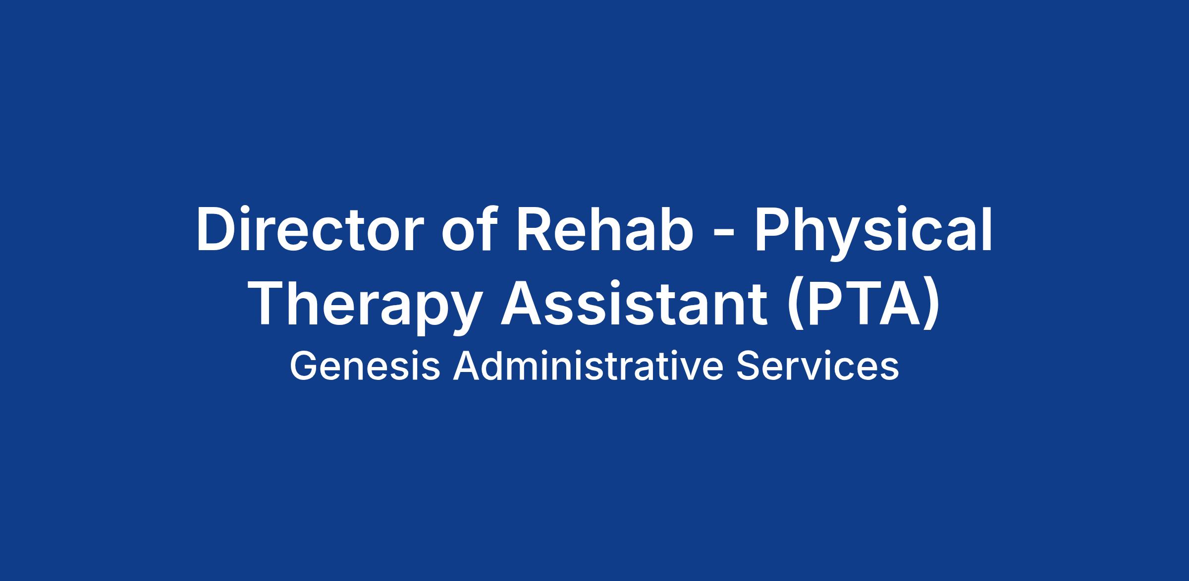 The Director of Rehab PTA is responsible for the efficient management of rehabilitation services in their assigned account(s). This position also assists in integration of rehabilitation services in all settings. The Director of Rehab PTA supports the delivery of the highest standard and quality of rehabilitation services.