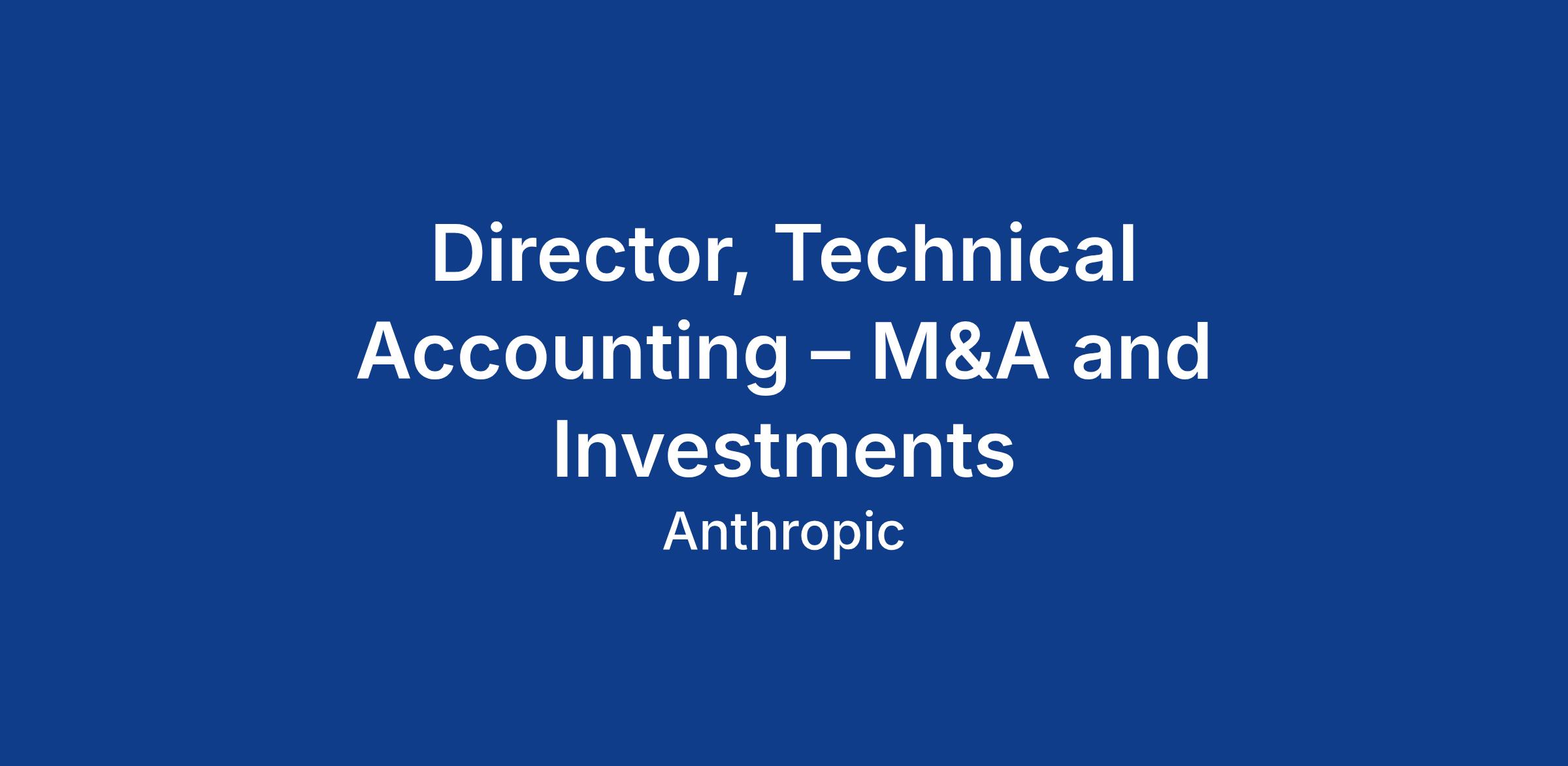 We are seeking a Director of Technical Accounting – M&A and Investments to join our Finance team at Anthropic. In this role, you will serve as the company’s principal accounting authority for mergers, acquisitions, strategic investments, and other complex capital transactions. You will own the technical accounting lifecycle for every deal — from term-sheet diligence through purchase accounting, opening balance sheet, and post-close measurement-period adjustments — and you will build the function, playbooks, and team required to execute these transactions with public-company rigor.
