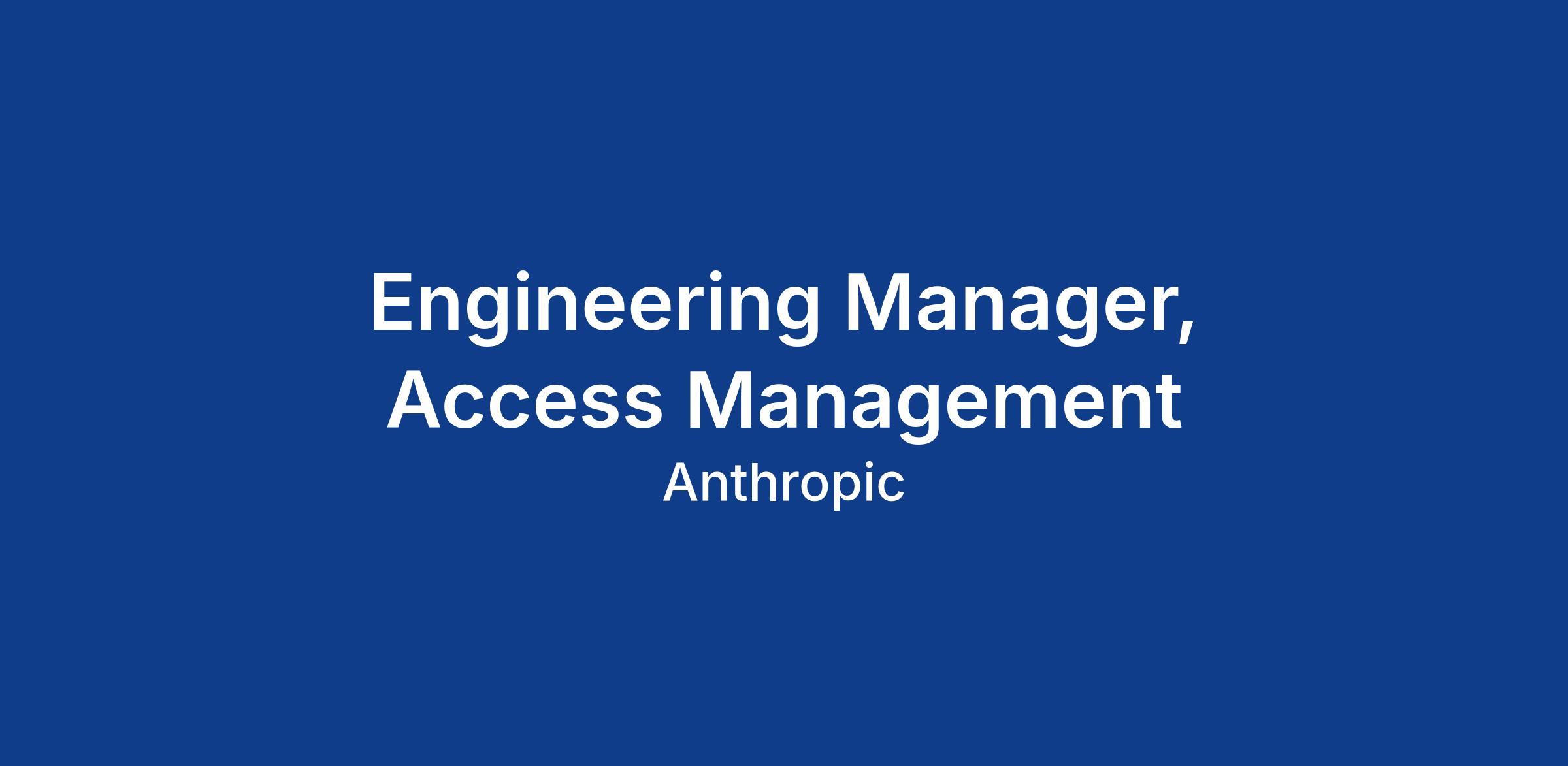 We are seeking a Security Engineering Manager to lead our Access Management team. This team builds and operates the systems that control who and what can access Anthropic's infrastructure, data, and AI systems — our policy-based authorization engine, our centralized access-request and provisioning platform, and the audit tooling that keeps these systems accountable.