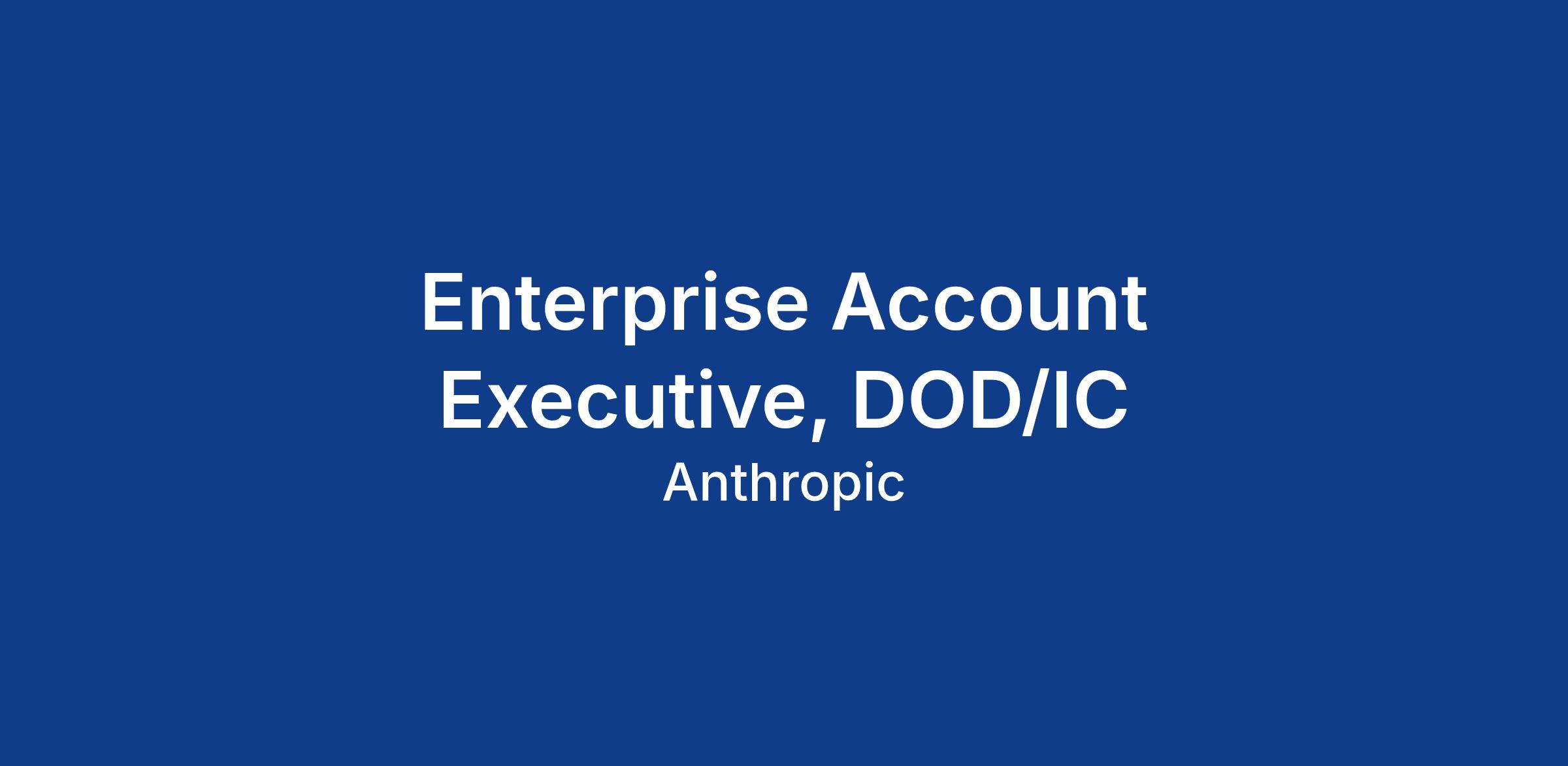 As a Federal DOD/IC Account Executive at Anthropic, you'll drive the adoption of safe, frontier AI across DOD/IC agencies. You'll leverage your deep understanding of DOD/IC operations and consultative sales expertise to propel revenue growth while becoming a trusted partner to customers, helping them embed and deploy AI while uncovering its full range of capabilities. In collaboration with GTM, product, and marketing teams, you'll help refine our approach to the DOD/IC market while maintaining the highest standards of security and compliance.
