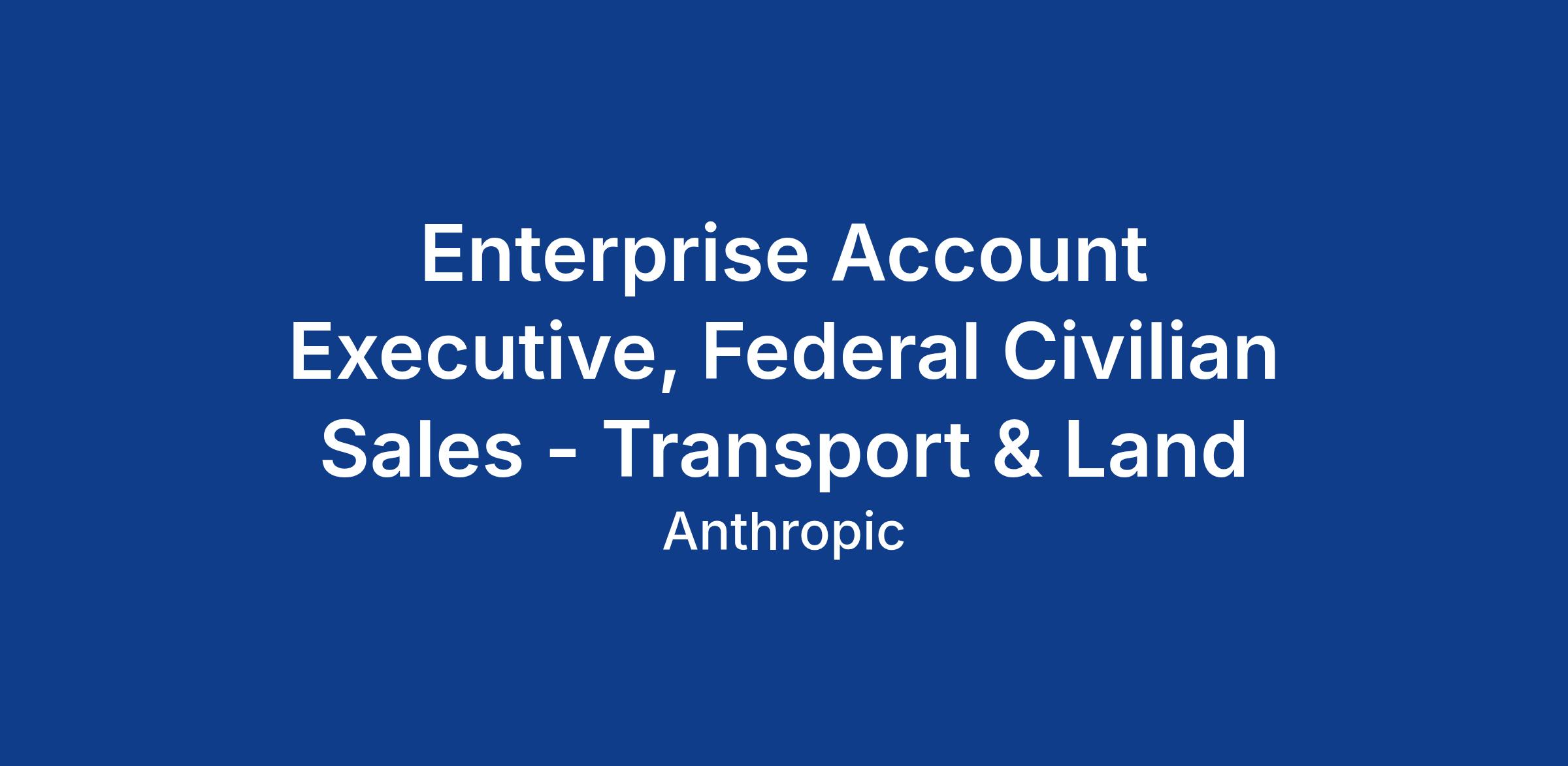 As a Federal Civilian Account Executive - Transport & Land at Anthropic, you'll drive the adoption of safe, frontier AI across federal civilian agencies such as the Department of Transport (DOT), USDA, HUD and GSA. You'll leverage your deep understanding of federal civilian operations and consultative sales expertise to propel revenue growth while becoming a trusted partner to customers, helping them embed and deploy AI while uncovering its full range of capabilities. In collaboration with GTM, product, and marketing teams, you'll help refine our approach to the federal civilian market while maintaining the highest standards of security and compliance.