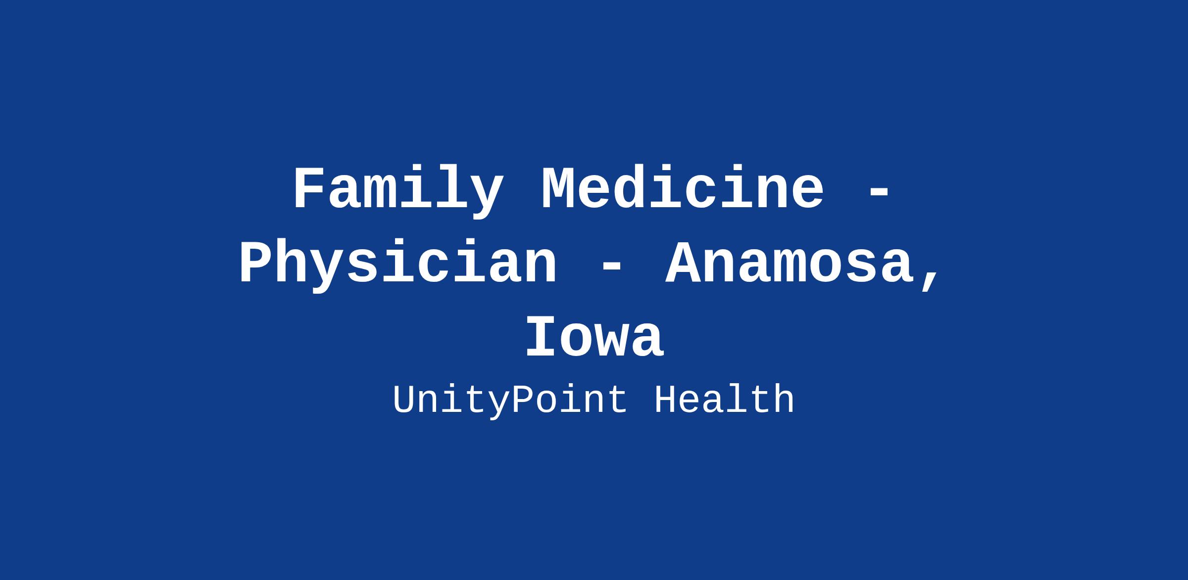 UnityPoint Clinic is actively recruiting for a Family Medicine Physician to join our team in Anamosa, Iowa. Choose a career that matters at UnityPoint Health. At UnityPoint Health, we believe that our patient-centered vision and physician-driven philosophy, along with our one team approach, ensures every patient knows just how much they matter to this world. Commitment to our team has earned us recognition as a Top 150 Places to Work in Healthcare 2022 by Becker’s Healthcare and among America’s Best Employers By State in Iowa, Illinois and Wisconsin. Come be an essential part of our core purpose—to improve the health of the people and communities we serve. At UnityPoint Health, you matter.