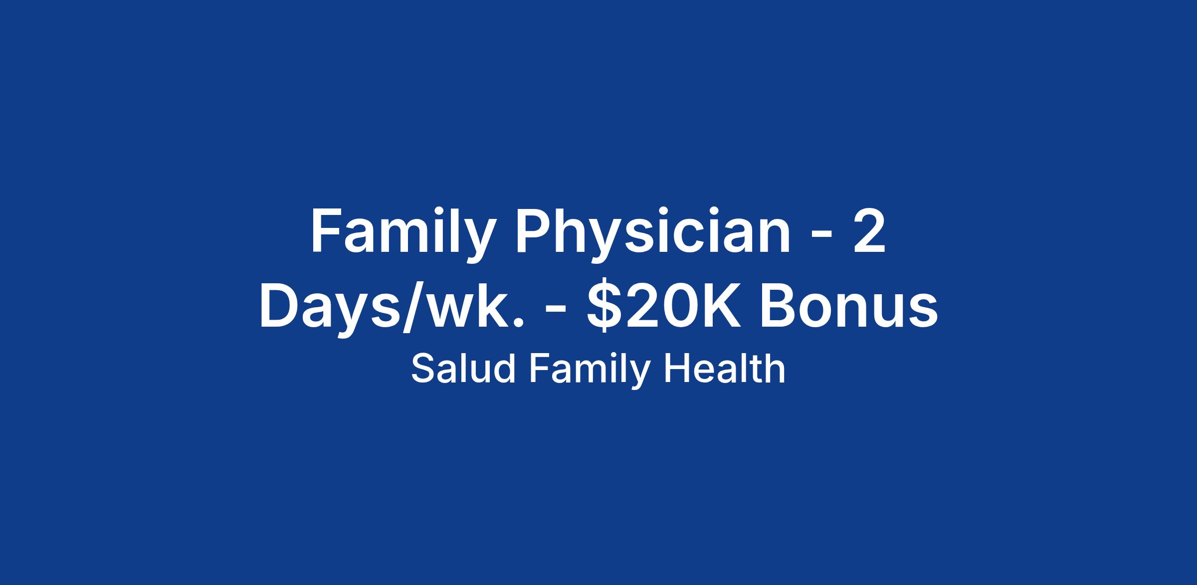 We're seeking a Board Certified, Part-Time / 2 Days Per Week Family Physician at our Community Health Clinic in Sterling, CO.