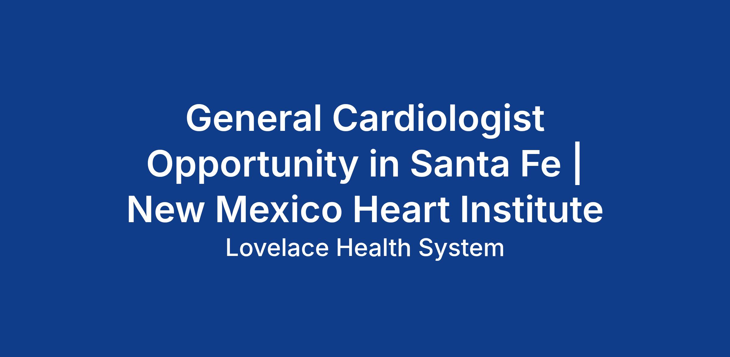 The New Mexico Heart Institute seeks a board-certified (or board-eligible) General Cardiologist to provide services at a conveniently located facility in the picturesque city of Santa Fe, NM. The ideal candidate is collaborative, willing to educate others, and amenable to working within a PSA while employed by another group. Whether you are an experienced physician or a new graduate with ties to New Mexico, this is a unique opportunity to advance your career in a role that blends cutting-edge interventional cardiology with a commitment to patient care and community service.