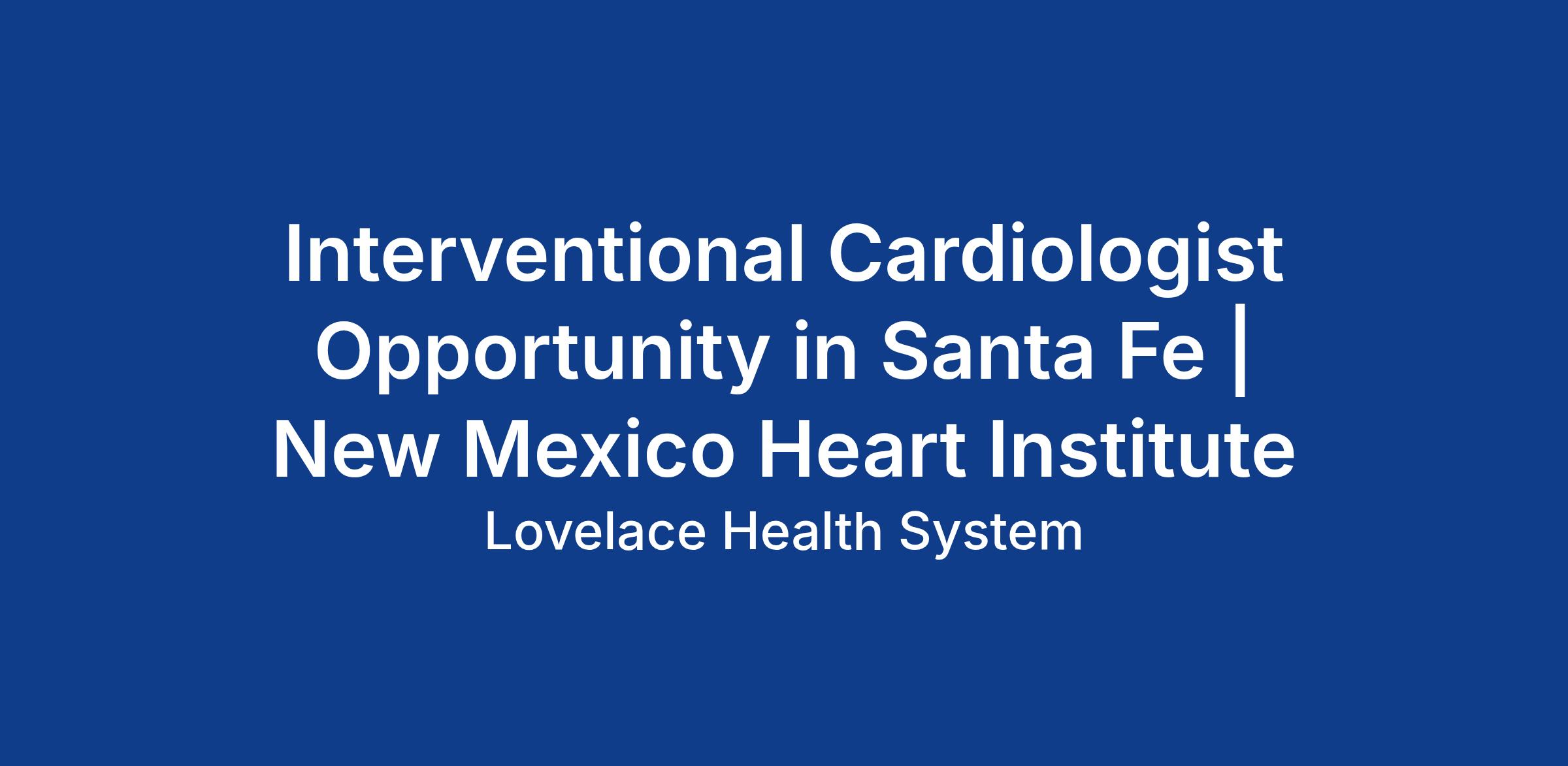 The New Mexico Heart Institute seeks a board-certified (or board-eligible) Interventional Cardiologist to provide services at a conveniently located facility in the picturesque city of Santa Fe, NM. The ideal candidate is collaborative, willing to educate others, and amenable to working within a PSA while employed by another group. Whether you are an experienced physician or a new graduate with ties to New Mexico, this is a unique opportunity to advance your career in a role that blends cutting-edge interventional cardiology with a commitment to patient care and community service.