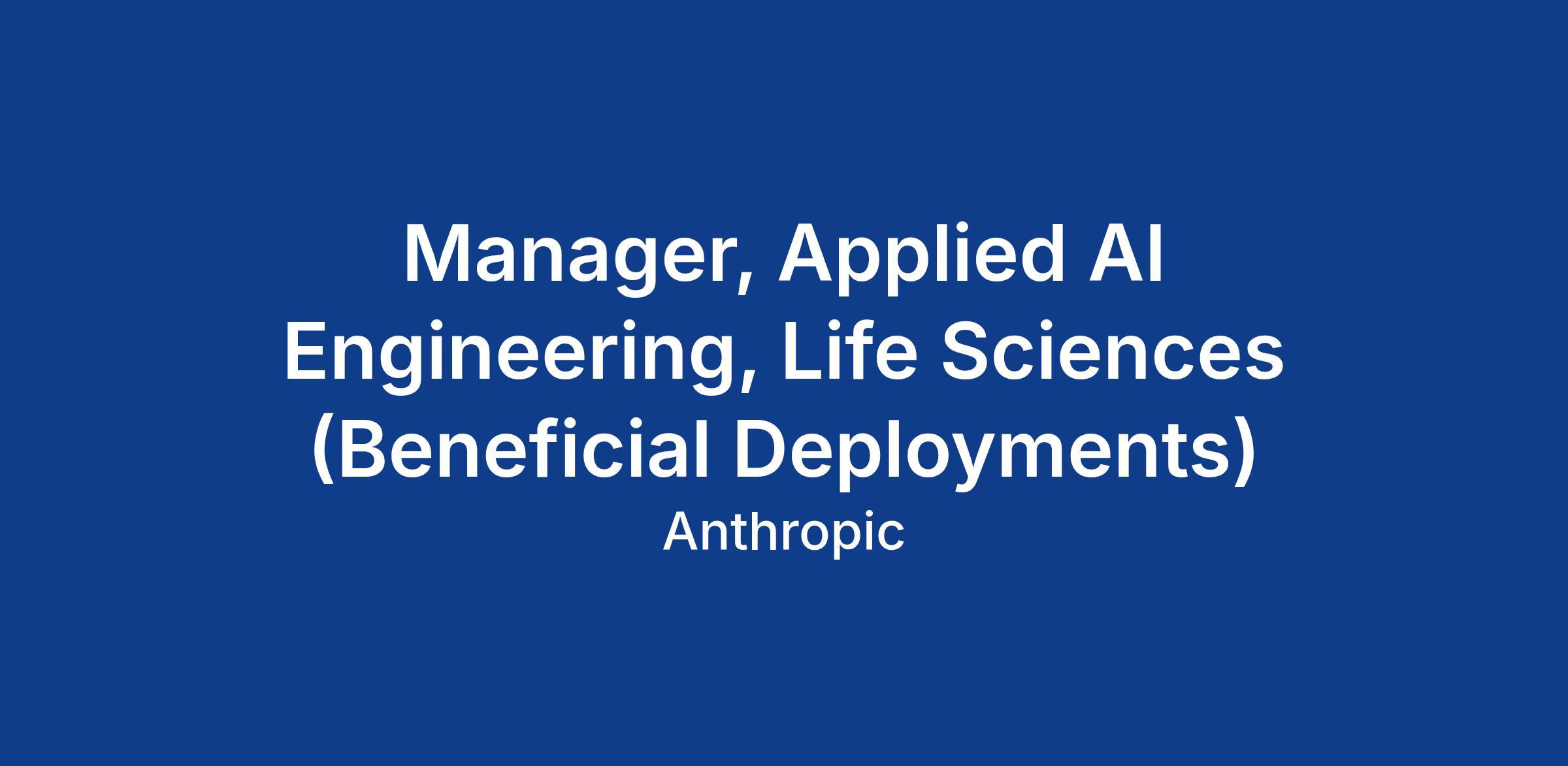 Manager, Applied AI Engineering, Life Sciences (Beneficial Deployments)