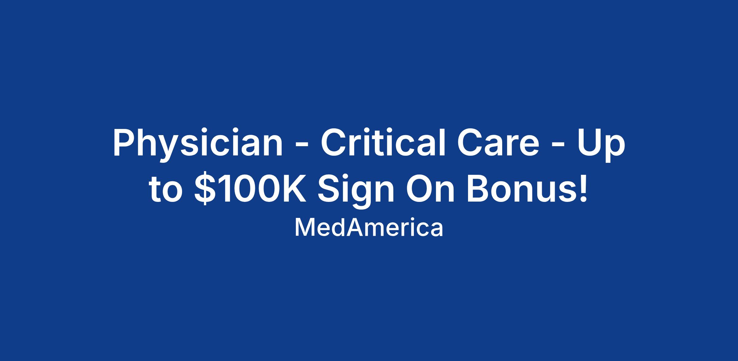 Physician - Critical Care - Up to $100K Sign On Bonus!