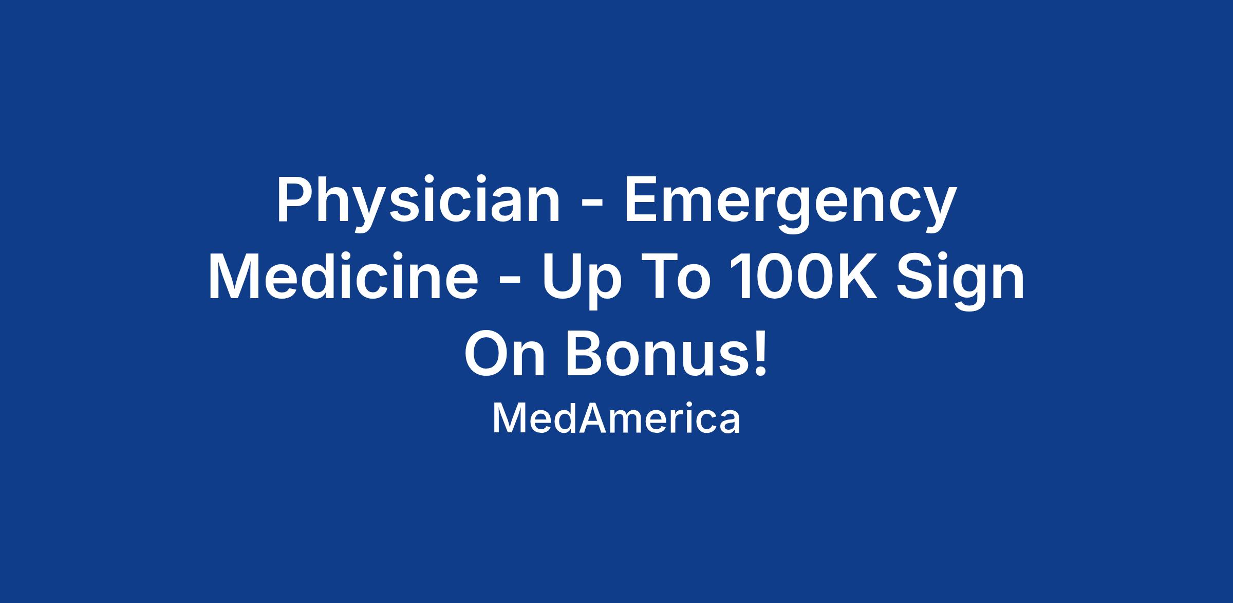 Physician - Emergency Medicine - Up To 100K Sign On Bonus!