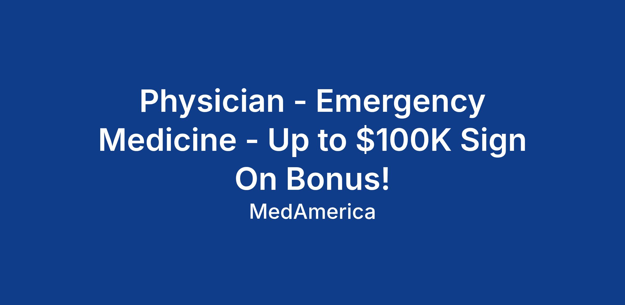 Physician - Emergency Medicine - Up to $100K Sign On Bonus!