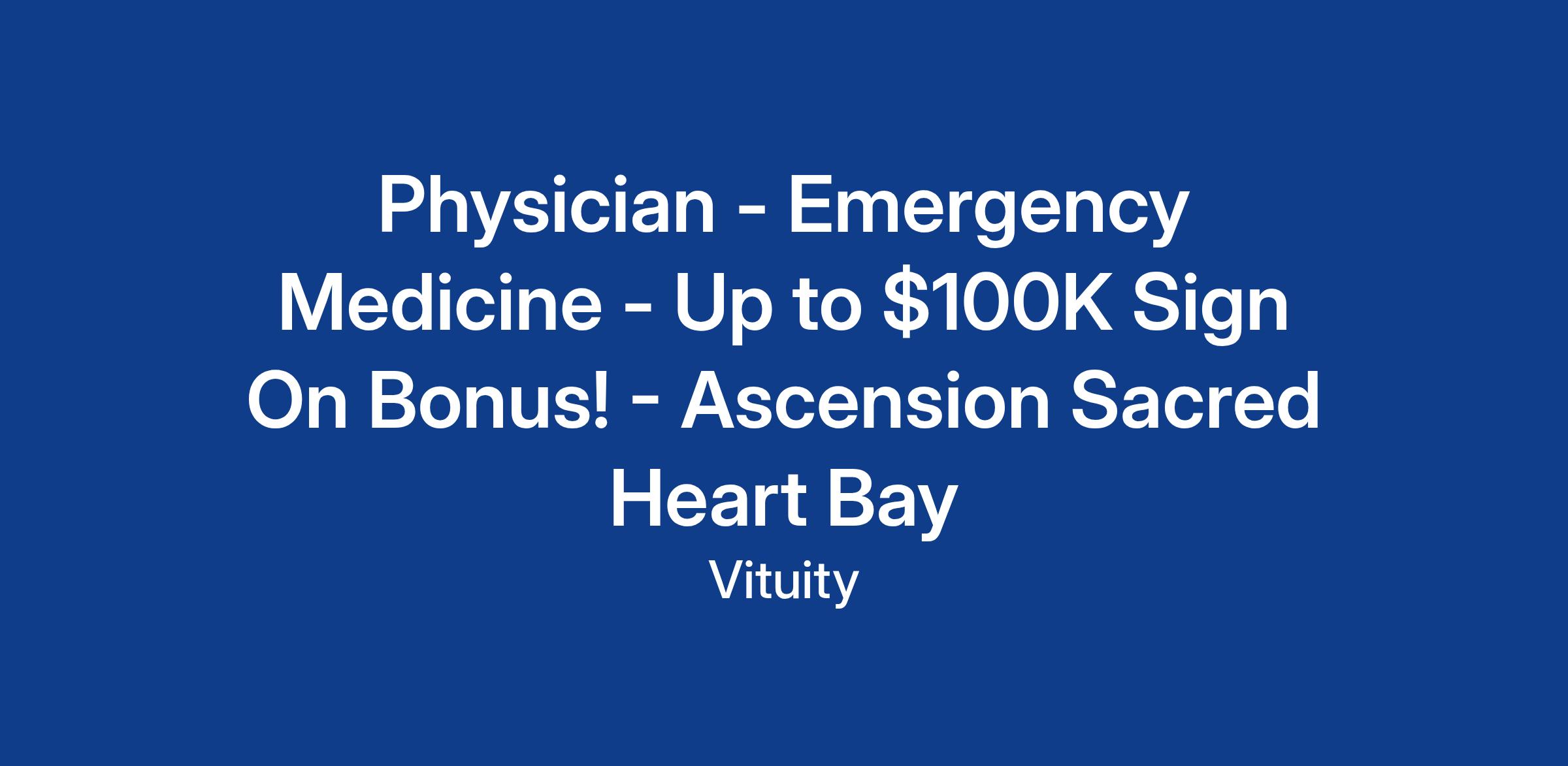 Up to $100K Sign On Bonus – Panama City, FL – Seeking Emergency Medicine Physicians