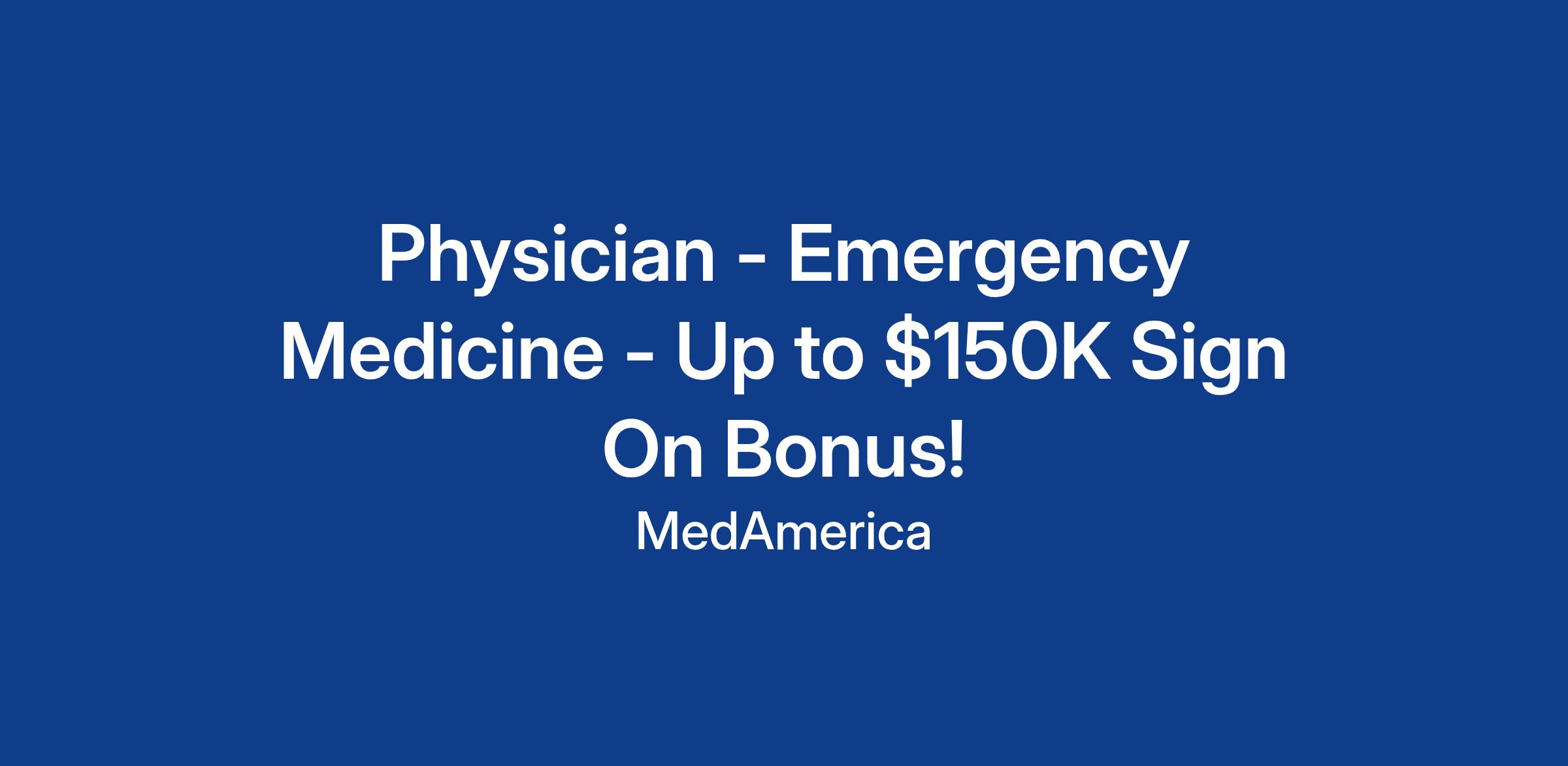 Physician - Emergency Medicine - Up to $150K Sign On Bonus!