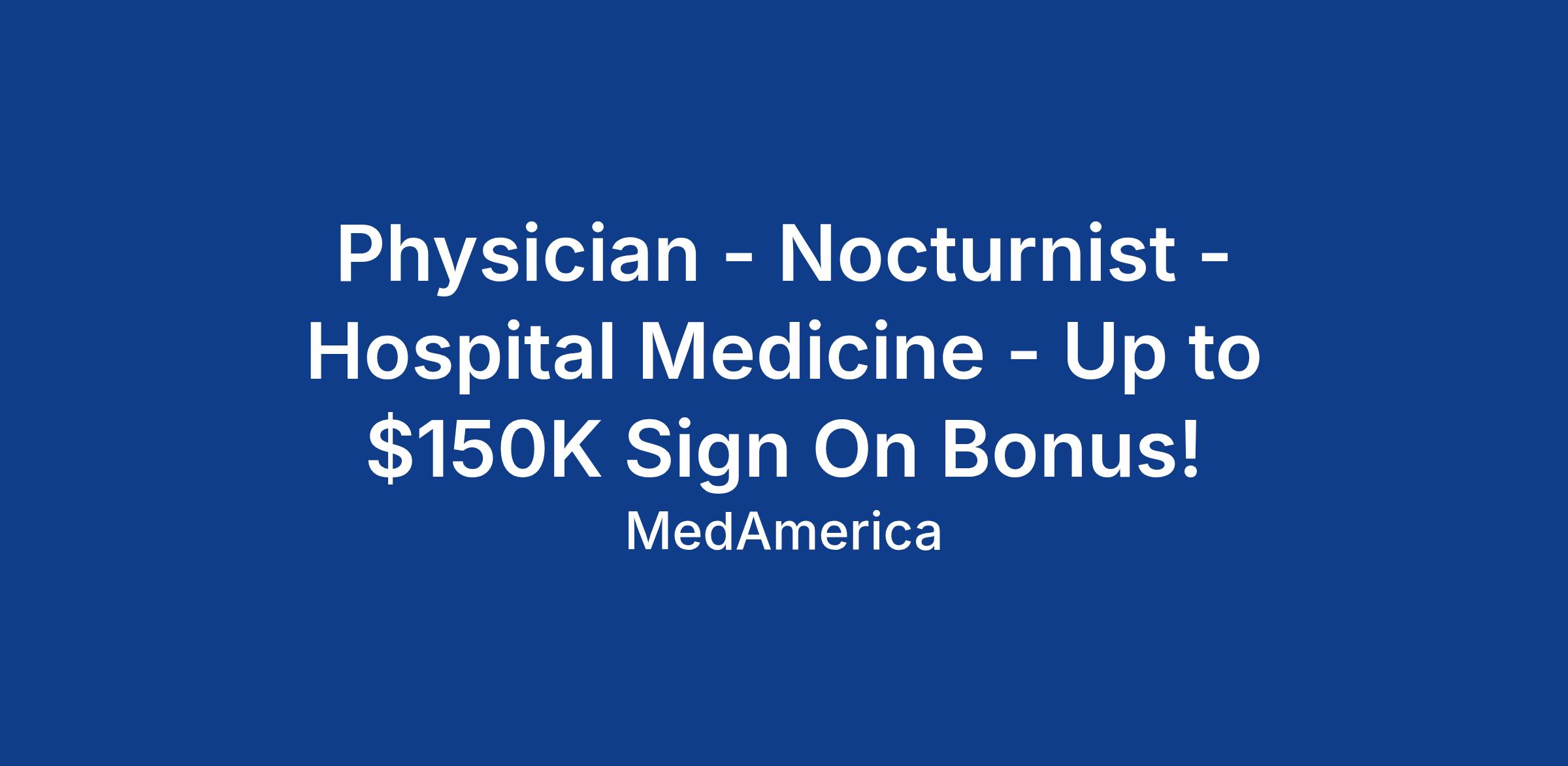 Physician - Nocturnist - Hospital Medicine - Up to $150K Sign On Bonus!