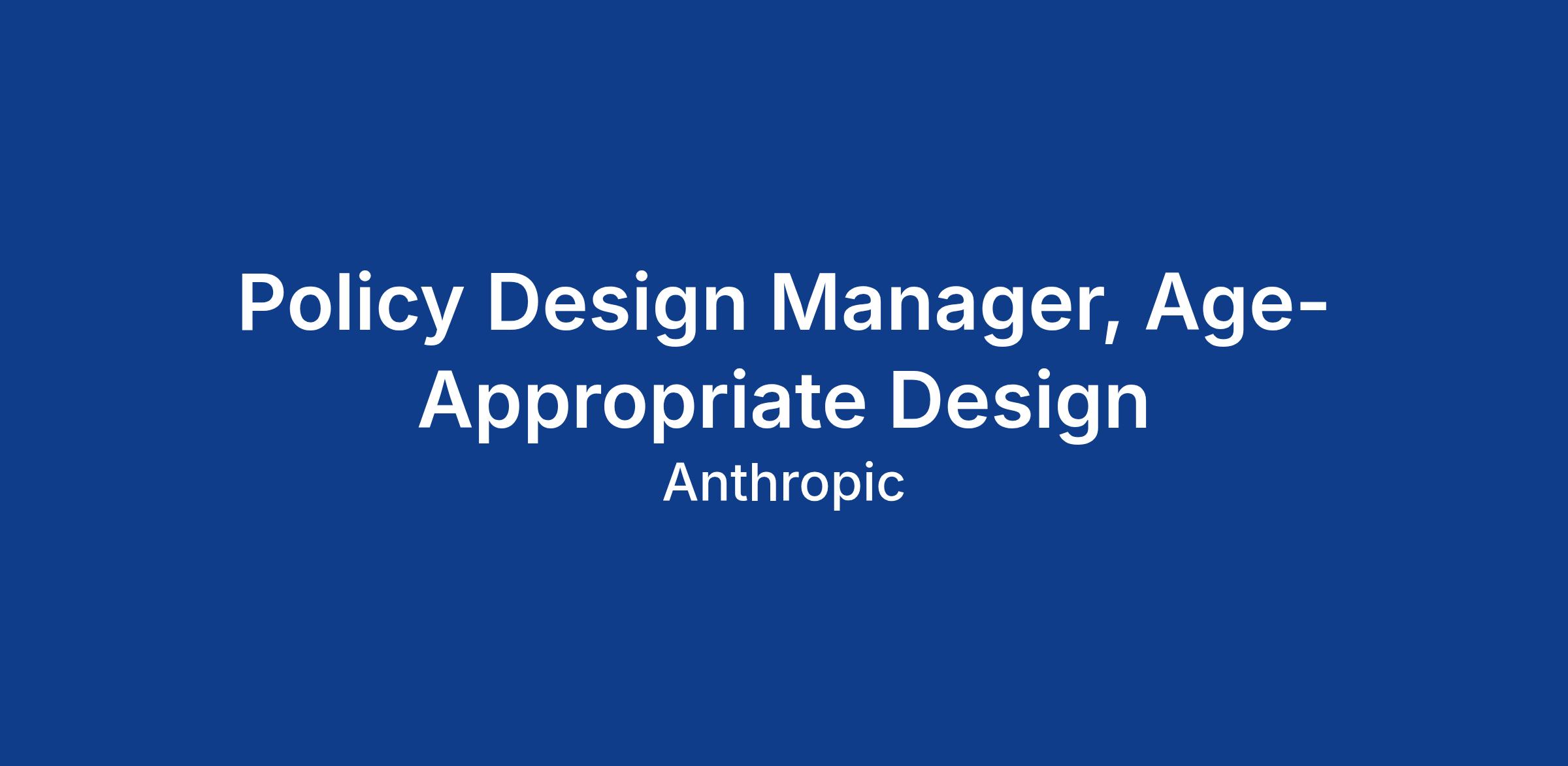 As a Safeguards Policy Design Manager, you will be responsible for developing usage policies, clarifying enforcement guidelines, and advising on safety interventions for our products and services. Your core focus will be on age-appropriate design and experiences, including child safety, age assurance, content classification, and adult sexual content. You will help define best practices for developers building on claude for deployment to users across different developmental stages, design age-assurance policies that protect minors from inappropriate content and interactions, and establish clear boundaries for adult content and experiences. In addition, you will advise teams on opportunities for age-appropriate helpfulness, including advising cross-functional teams on beneficial use cases for younger users where appropriate. Safety is core to our mission and you’ll help shape policy creation and development so that our users can safely interact with and build on top of our products in a harmless, helpful and honest way.