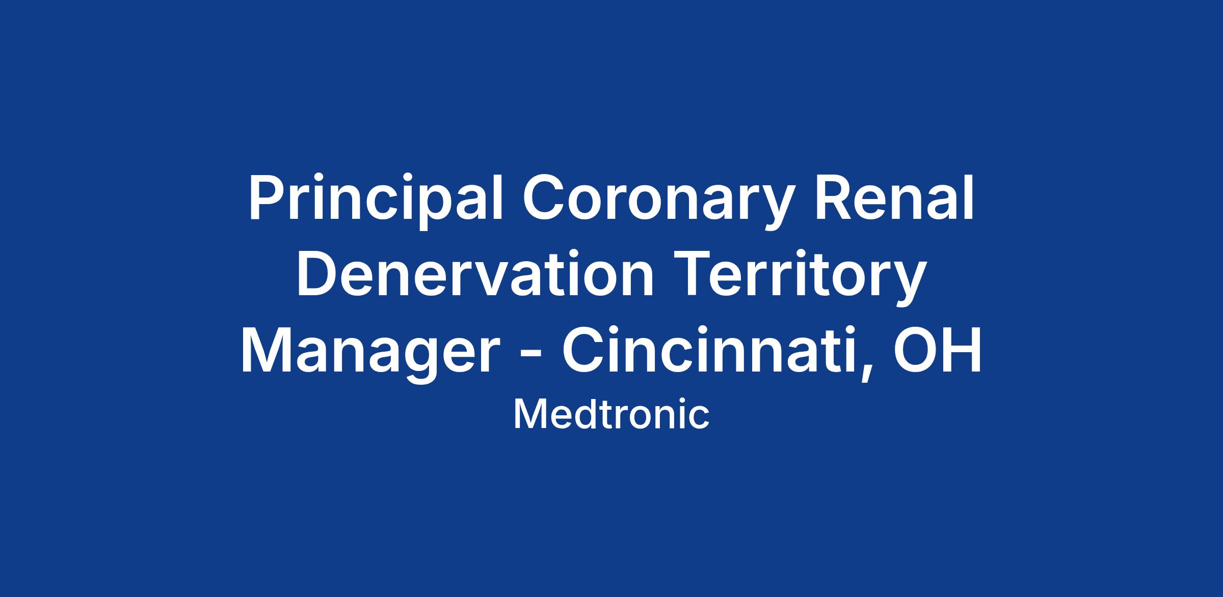 Principal Coronary Renal Denervation Territory Manager - Cincinnati, OH