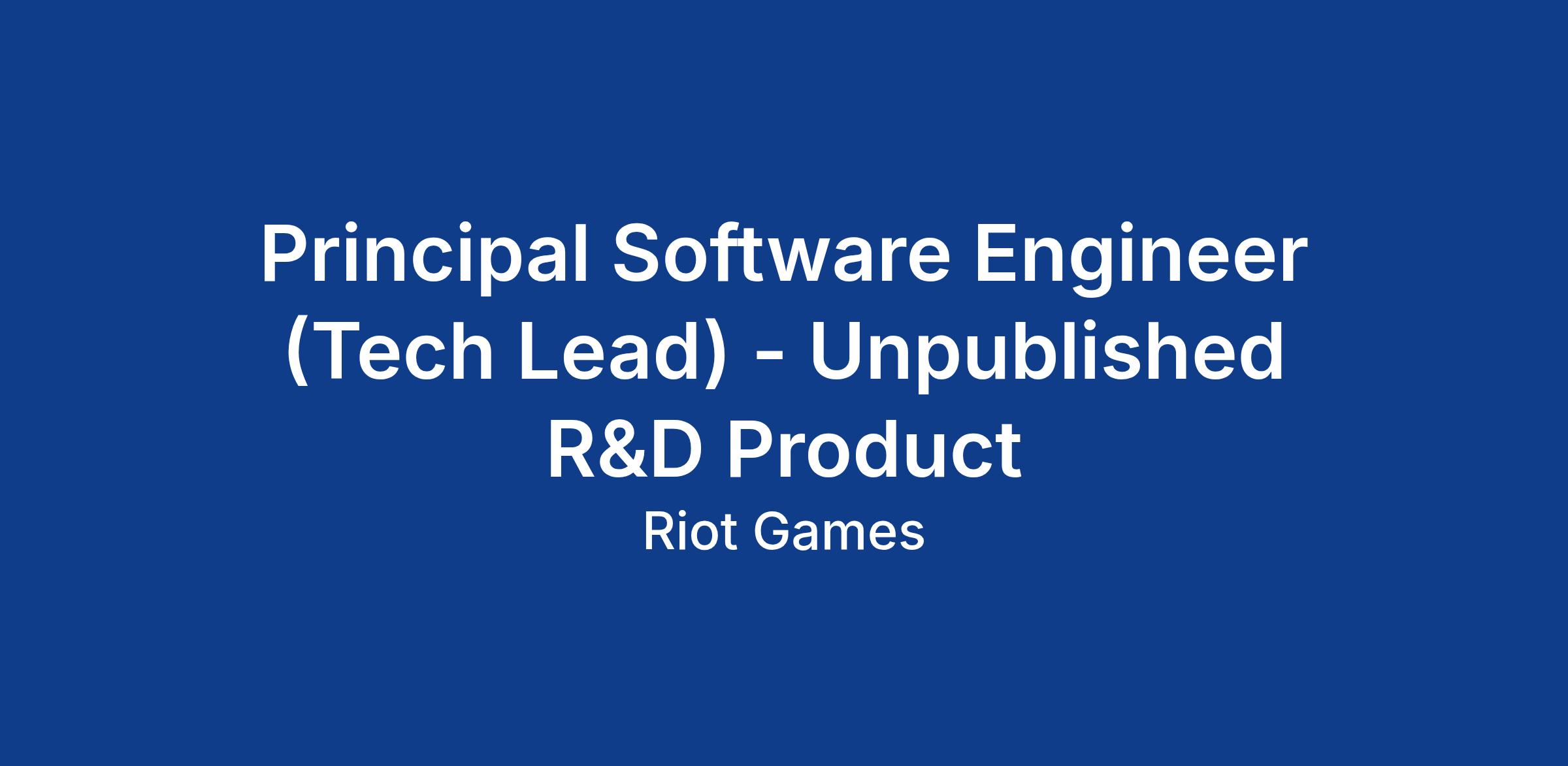Principal Software Engineer (Tech Lead) - Unpublished R&D Product