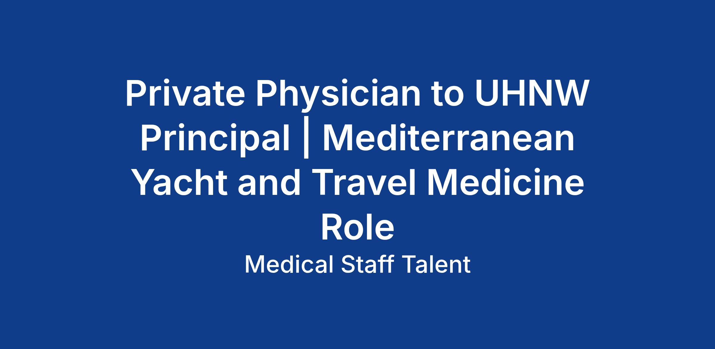 Private Physician to UHNW Principal | Mediterranean Yacht and Travel Medicine Role