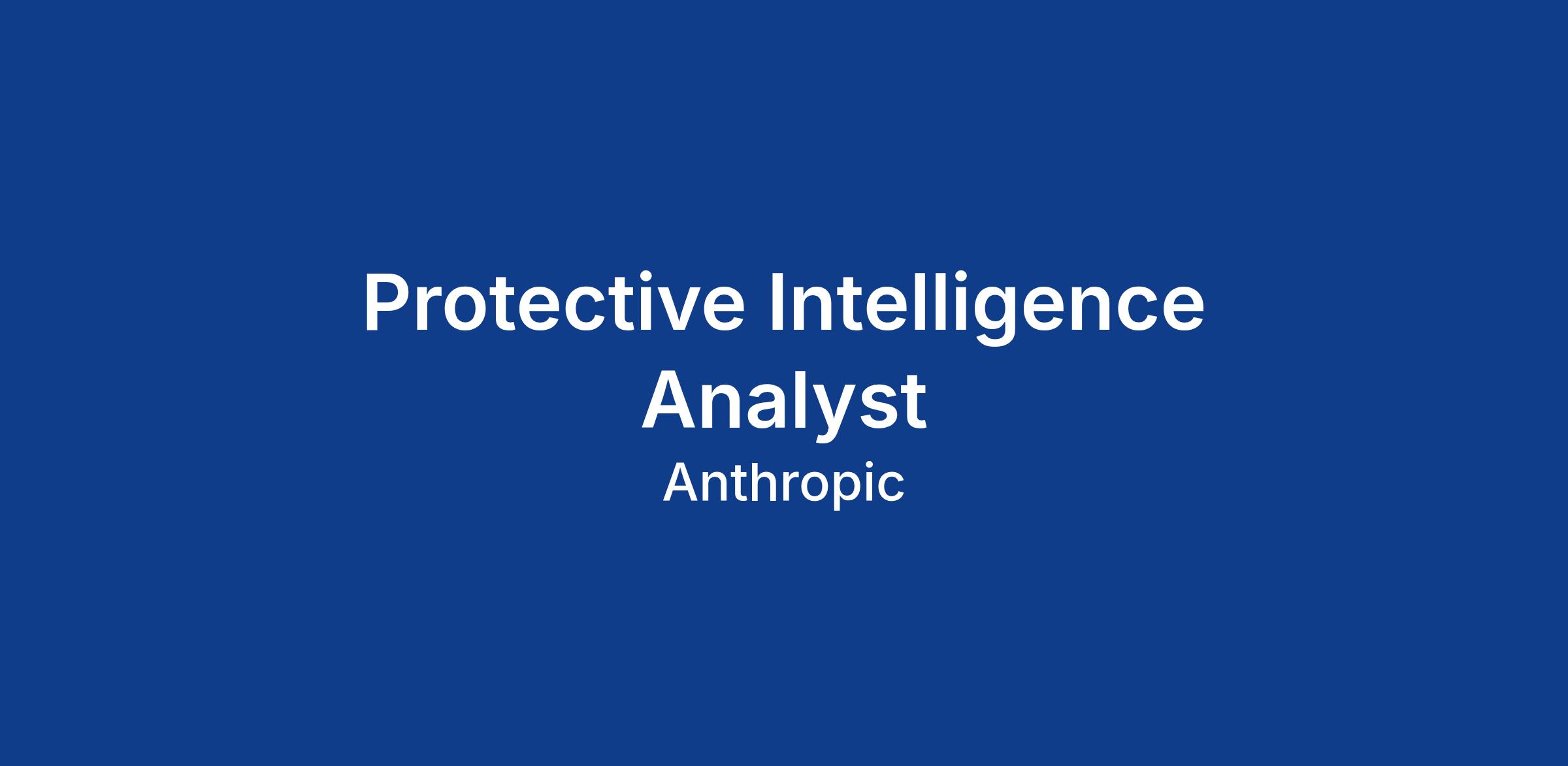We are seeking a Protective Intelligence Analyst to join our growing protective services team. In this role, you will play a critical part in identifying, assessing, and mitigating threats to Anthropic's people, facilities, operations, and reputation through intelligence collection, analysis, and dissemination.