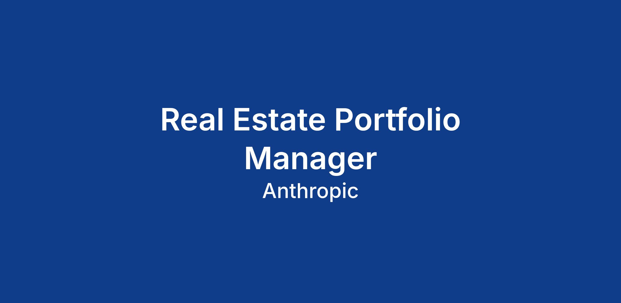 We are seeking a senior Real Estate Portfolio Manager to join Anthropic's Workplace and Real Estate team to lead strategic planning, portfolio optimization, and a team of real estate professionals across our global footprint. This high-impact role will develop comprehensive real estate strategies, conduct rigorous market and financial analyses, and deliver executive-level recommendations to our CFO and senior leadership. The Real Estate Portfolio Manager will oversee a team including a Real Estate Program Manager and an Occupancy Planning/Lease Administration specialist, building a high-performing function that brings the strategic rigor and analytical sophistication of established corporate real estate organizations to our rapidly scaling AI company.