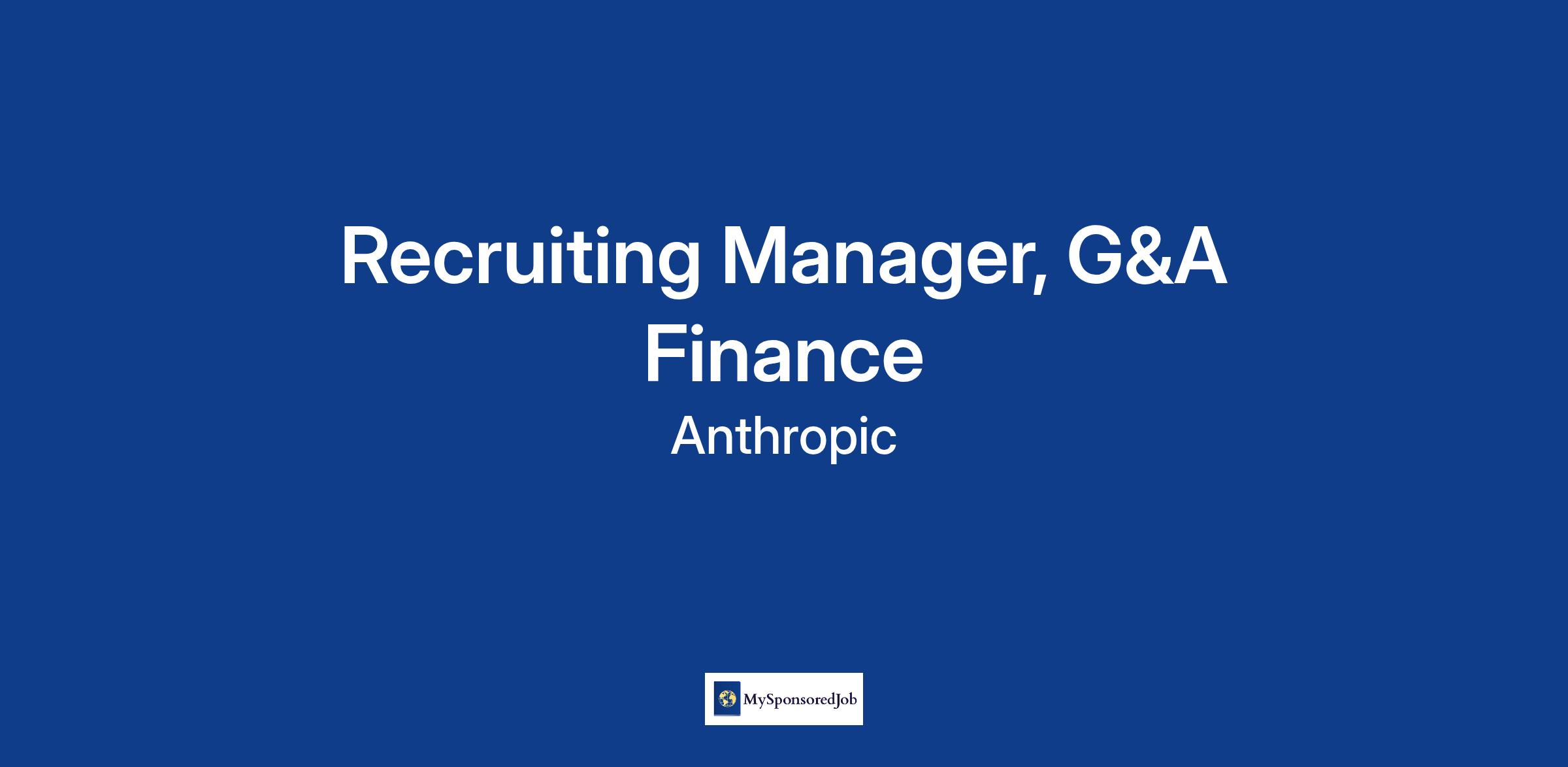 Anthropic is seeking an exceptional recruiting leader to build and scale our General & Administrative (G&A) recruiting function during a pivotal period of growth. As Recruiting Manager, G&A, you'll partner closely with senior leaders across Finance, Legal, People, and Operations to attract world-class talent that will help us safely scale AI systems that benefit humanity.