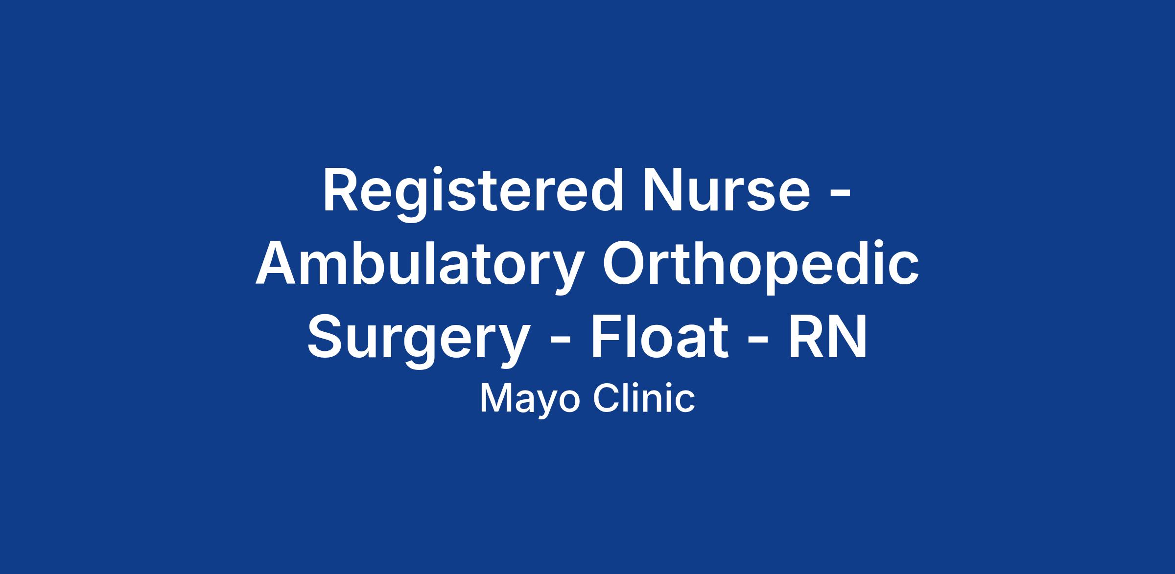 Gonda Building - Ambulatory Orthopedic Surgery- Float - RN