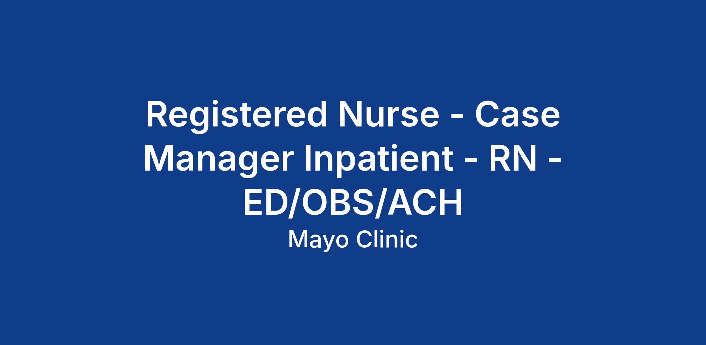clinical documentation. The RN Case Manager will function within the Mayo