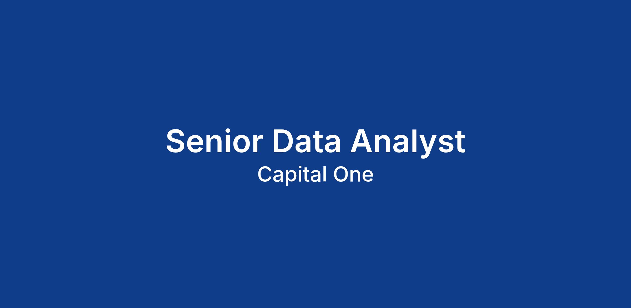 Senior Data Analyst At Capital One, data is at the center of everything we do. When we launched as a startup we disrupted the credit card industry by individually personalizing every credit card offer using statistical modeling and the relational database, cutting edge technology in 1988! Fast-forward a few years, and this little innovation and our passion for data has skyrocketed us to a Fortune 200 company and a leader in the world of data-driven decision-making. As a Data Analyst at Capital One you will leverage analytic and technical skills to innovate, build, and maintain well-managed data solutions and capabilities to tackle business problems. On any given day you will be challenged by three types of work – Innovation, Business Intelligence and Data Management: Innovation Use Open Source/Digital technologies to mine complex, voluminous, and different varieties of data sources and platforms Build well-managed data solutions, tools, and capabilities to enable self-service frameworks for data consumers Demonstrate ability to explore and quickly grasp new technologies to progress varied initiatives Business Intelligence Partner with the business to provide consultancy and translate the business needs to design and develop tools, techniques, metrics, and dashboards for insights and data visualization Drive analysis that provides meaningful insights on business strategies Data Management Drive an understanding and adherence to the principles of data quality management including metadata, lineage, and business definitions Work collaboratively with appropriate Tech teams to manage security mechanisms and data access governance Build and execute tools to monitor and report on data quality Our ideal candidate will have: Degree specialized in a Science, Technology, Engineering, Mathematics discipline Scripting experience in (Python, R, Spark, and SQL) Strong desire and experience with data in various forms (data warehouses/SQL, unstructured data) Experience utilizing and developing within Snowflake services Basic Qualifications Currently has, or is in the process of obtaining a Bachelor’s Degree in quantitative field (Statistics, Economics, Operations Research, Analytics, Mathematics, Computer Science or a related quantitative field) plus at least 2 years of experience performing data analytics, or currently has, or is in the process of obtaining a Master’s Degree with an expectation that required degree will be obtained on or before the scheduled start date. At least 1 year of experience working with at least one scripting language At least 1 year of experience utilizing business intelligence visualization tool At least 1 year of experience querying, analyzing and working with data languages and platforms Preferred Qualifications: Master’s Degree in a Science, Technology, Engineering, Mathematics discipline At least 2 years of experience coding in Python, R, Spark, or SQL At least 2 years of experience working within process management and improvement methodologies – Agile, Lean, Six Sigma, etc. At least 1 year of experience utilizing and developing within AWS services At least 1 year of experience working with and demonstrating knowledge of data governance, data quality management concepts and data quality tools (i.e. Informatica DQ) Capital One will consider sponsoring a new qualified applicant for employment authorization for this position. The minimum and maximum full-time annual salaries for this role are listed below, by location. Please note that this salary information is solely for candidates hired to perform work within one of these locations, and refers to the amount Capital One is willing to pay at the time of this posting. Salaries for part-time roles will be prorated based upon the agreed upon number of hours to be regularly worked. McLean, VA: $111,200 - $126,900 for Sr. Data Analyst Richmond, VA: $101,100 - $115,400 for Sr. Data Analyst Candidates hired to work in other locations will be subject to the pay range associated with that location, and the actual annualized salary amount offered to any candidate at the time of hire will be reflected solely in the candidate’s offer letter. This role is also eligible to earn performance based incentive compensation, which may include cash bonus(es) and/or long term incentives (LTI). Incentives could be discretionary or non discretionary depending on the plan. Capital One offers a comprehensive, competitive, and inclusive set of health, financial and other benefits that support your total well-being. Learn more at the Capital One Careers website. Eligibility varies based on full or part-time status, exempt or non-exempt status, and management level. This role is expected to accept applications for a minimum of 5 business days. No agencies please. Capital One is an equal opportunity employer (EOE, including disability/vet) committed to non-discrimination in compliance with applicable federal, state, and local laws. Capital One promotes a drug-free workplace. Capital One will consider for employment qualified applicants with a criminal history in a manner consistent with the requirements of applicable laws regarding criminal background inquiries, including, to the extent applicable, Article 23-A of the New York Correction Law; San Francisco, California Police Code Article 49, Sections 4901-4920; New York City’s Fair Chance Act; Philadelphia’s Fair Criminal Records Screening Act; and other applicable federal, state, and local laws and regulations regarding criminal background inquiries. If you have visited our website in search of information on employment opportunities or to apply for a position, and you require an accommodation, please contact Capital One Recruiting at 1-800-304-9102 or via email at RecruitingAccommodation@capitalone.com. All information you provide will be kept confidential and will be used only to the extent required to provide needed reasonable accommodations. For technical support or questions about