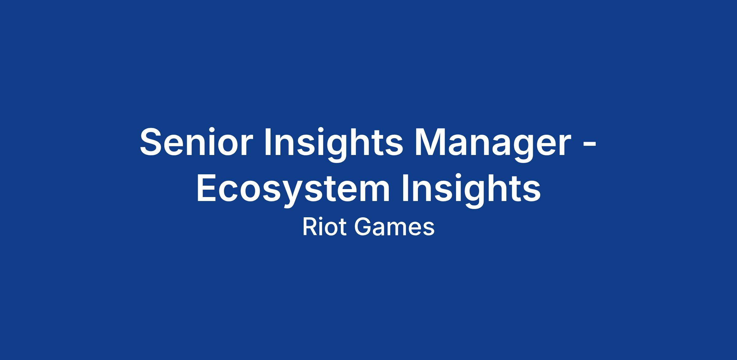 The Ecosystem Insights team serves as Riot’s underwriting body for major ecosystem bets ensuring investments across Esports, Publishing, Platform, CPX, and Entertainment are grounded in rigorous, player-centric evidence. The team works on connecting around-game experiences to downstream player and business outcomes, and partners directly with EcoLT to inform strategy, prioritization, and long-term investment decisions.
