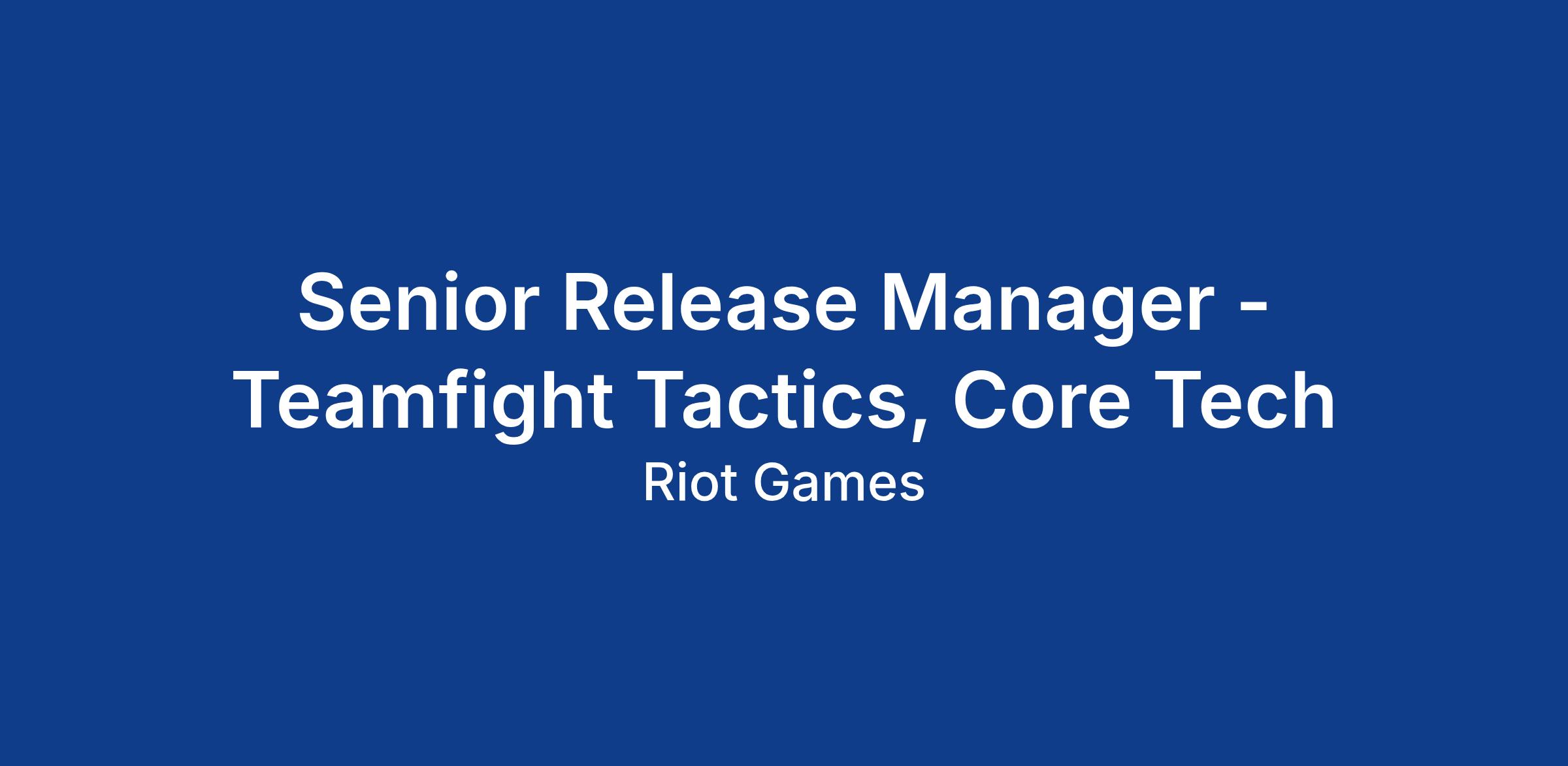 Senior Release Manager - Teamfight Tactics, Core Tech
