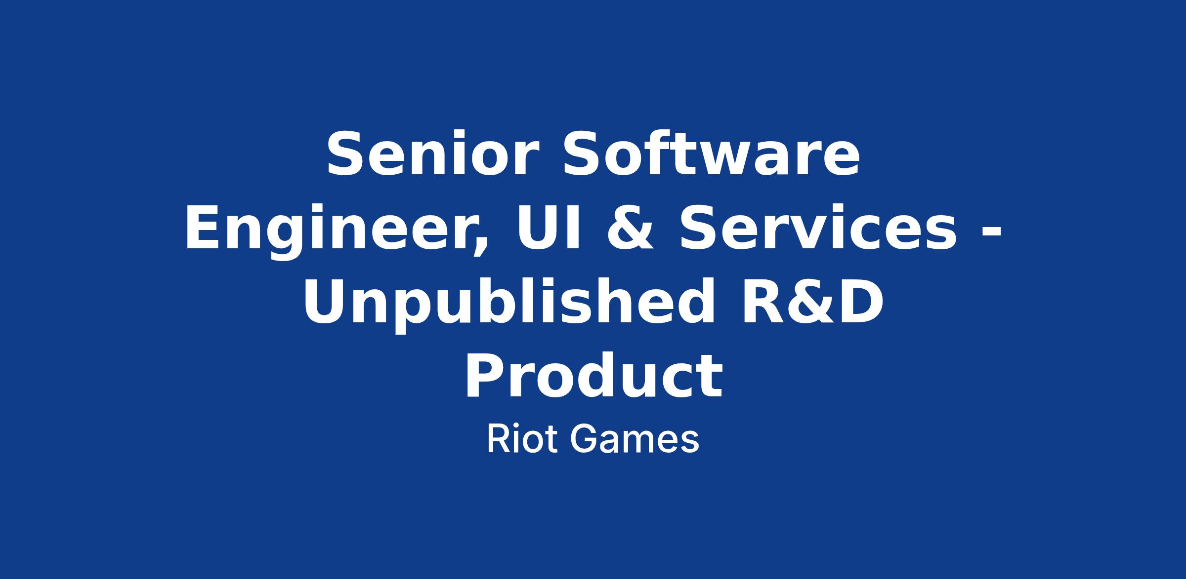 Senior Software Engineer, UI & Services - Unpublished R&D Product