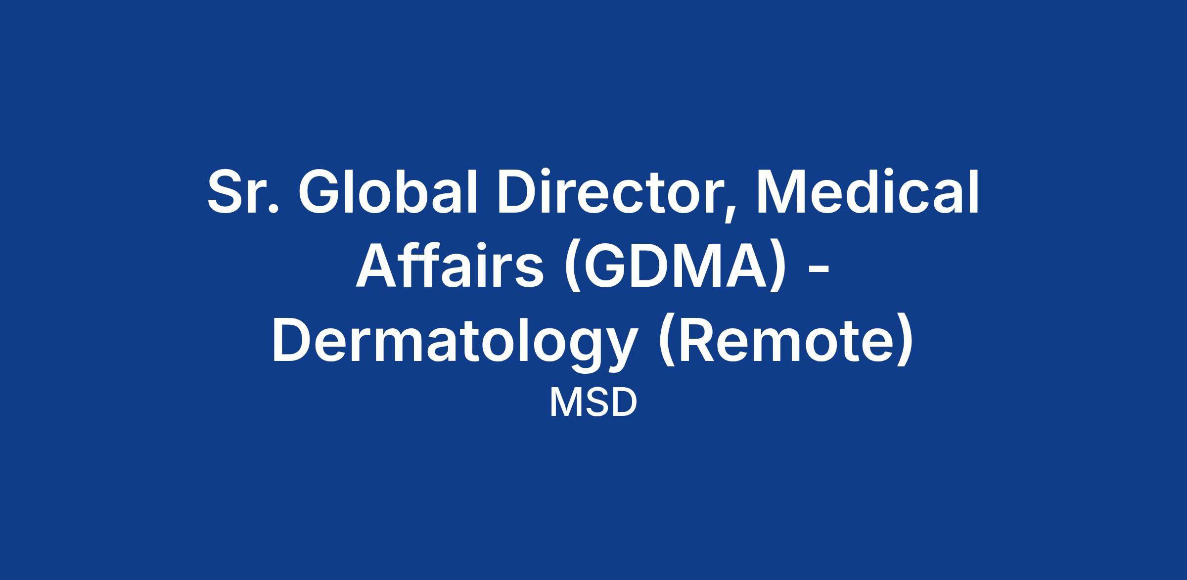 Sr. Global Director, Medical Affairs (GDMA) - Dermatology (Remote)