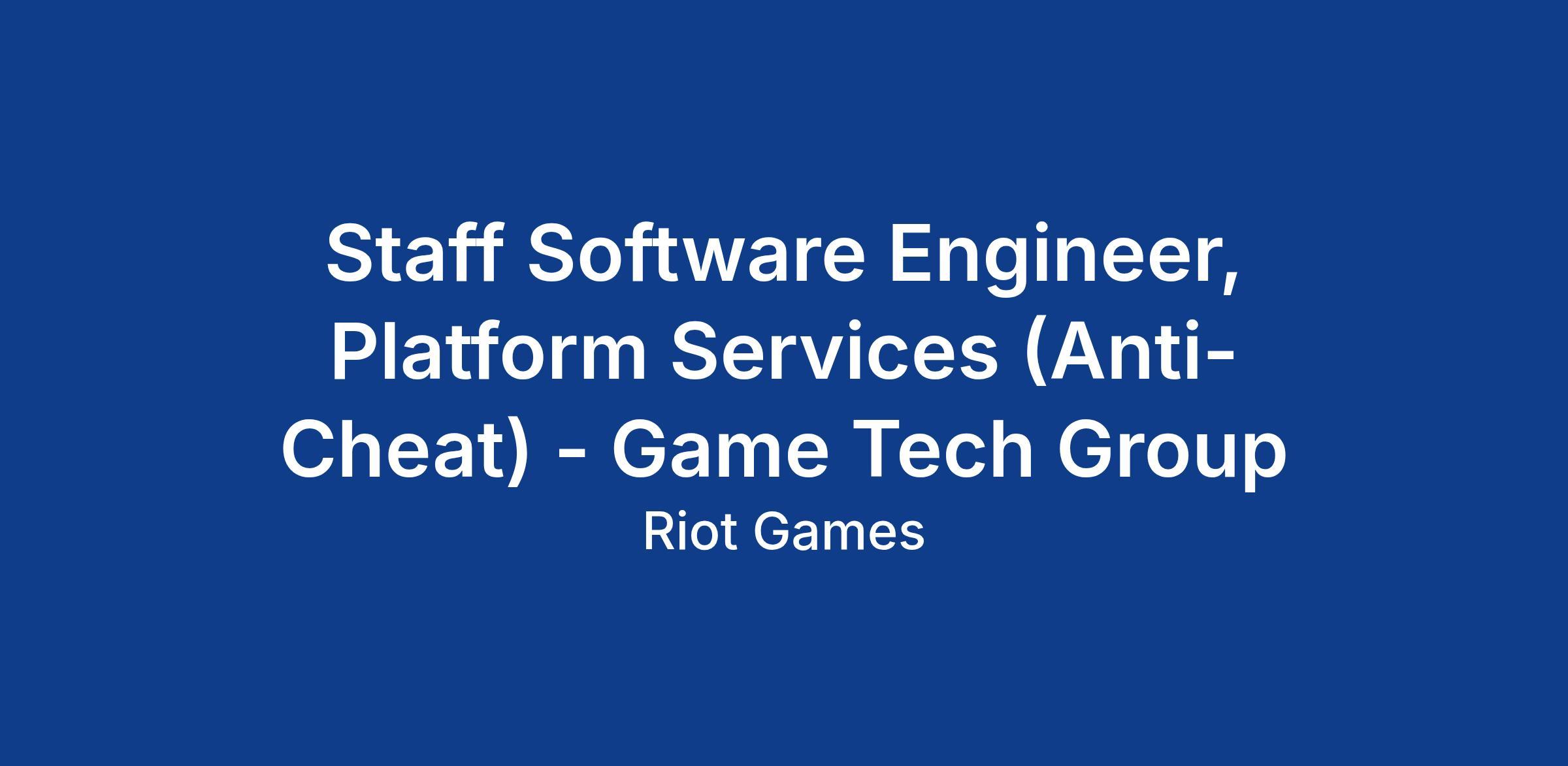 Staff Software Engineer, Platform Services (Anti-Cheat) - Game Tech Group