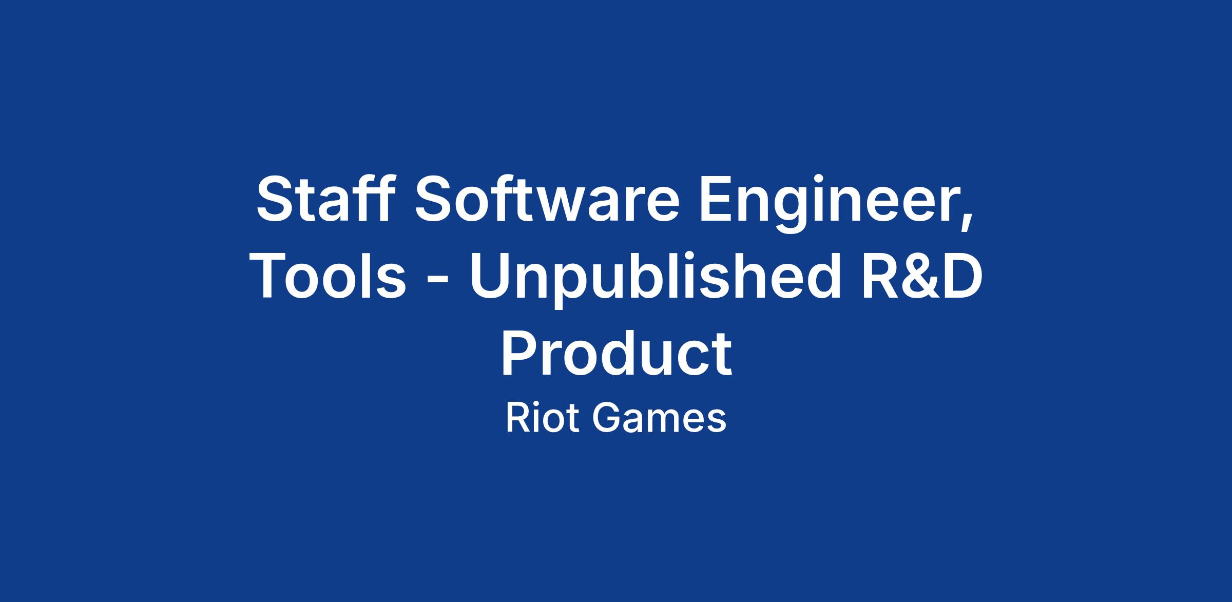Staff Software Engineer, Tools - Unpublished R&D Product
