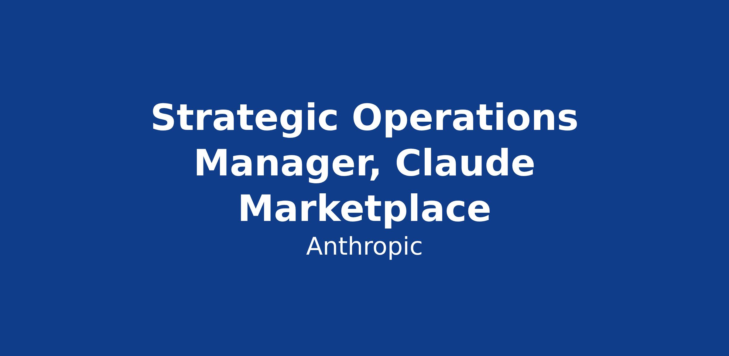 Strategic Operations Manager, Claude Marketplace