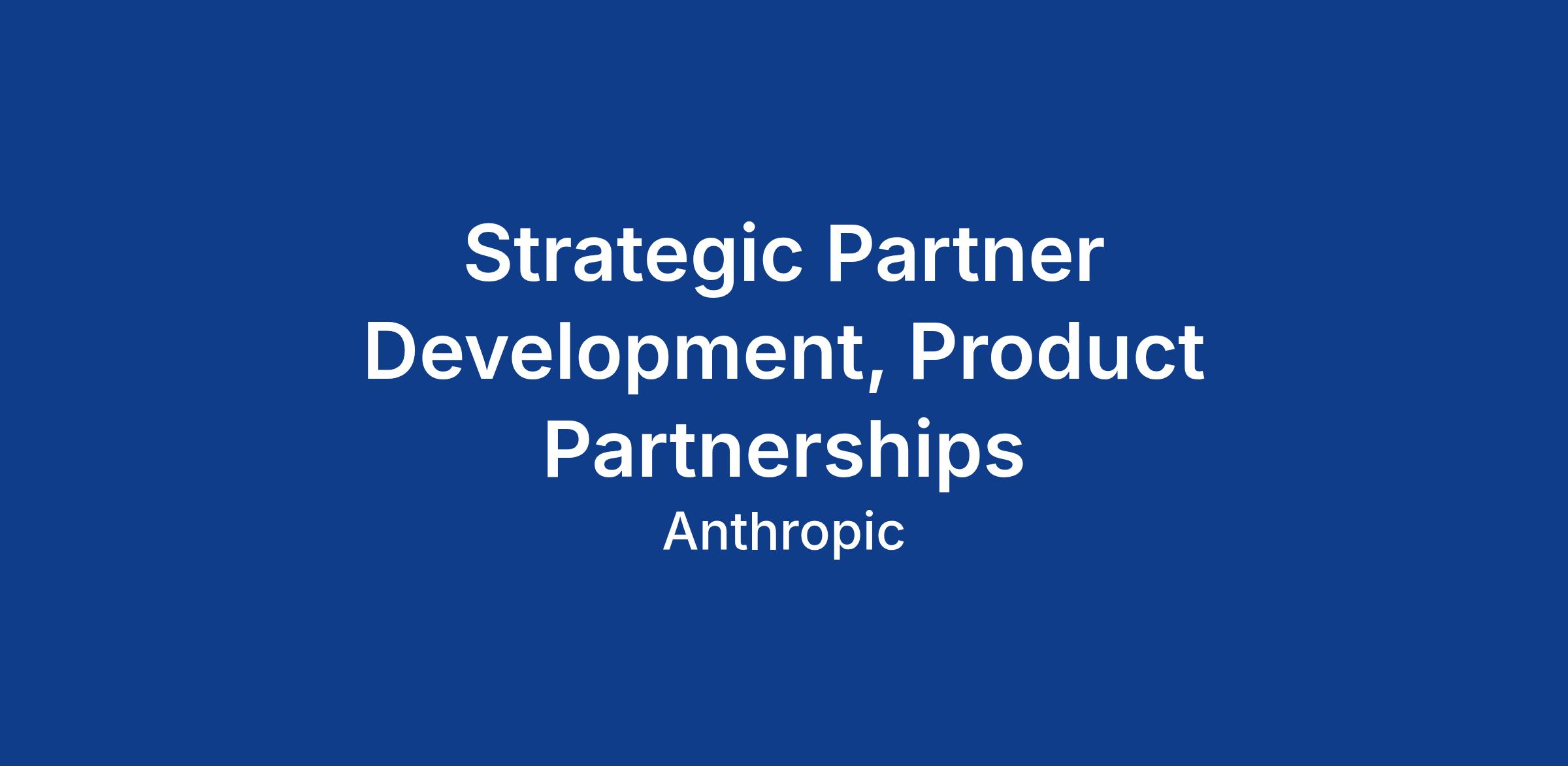 We are looking for a Strategic Partner Development, Product Partnerships, to manage our product partnerships and integrations with a wide range of content providers, improving Anthropic’s products. In this role, you will be responsible for prospecting, researching, negotiating, and closing deals with a wide variety of content providers necessary to build and maintain Anthropic’s product portfolio. A background in product partnerships at a major tech company will be very beneficial in this role, as is comfort in working at a fast-paced start-up environment.